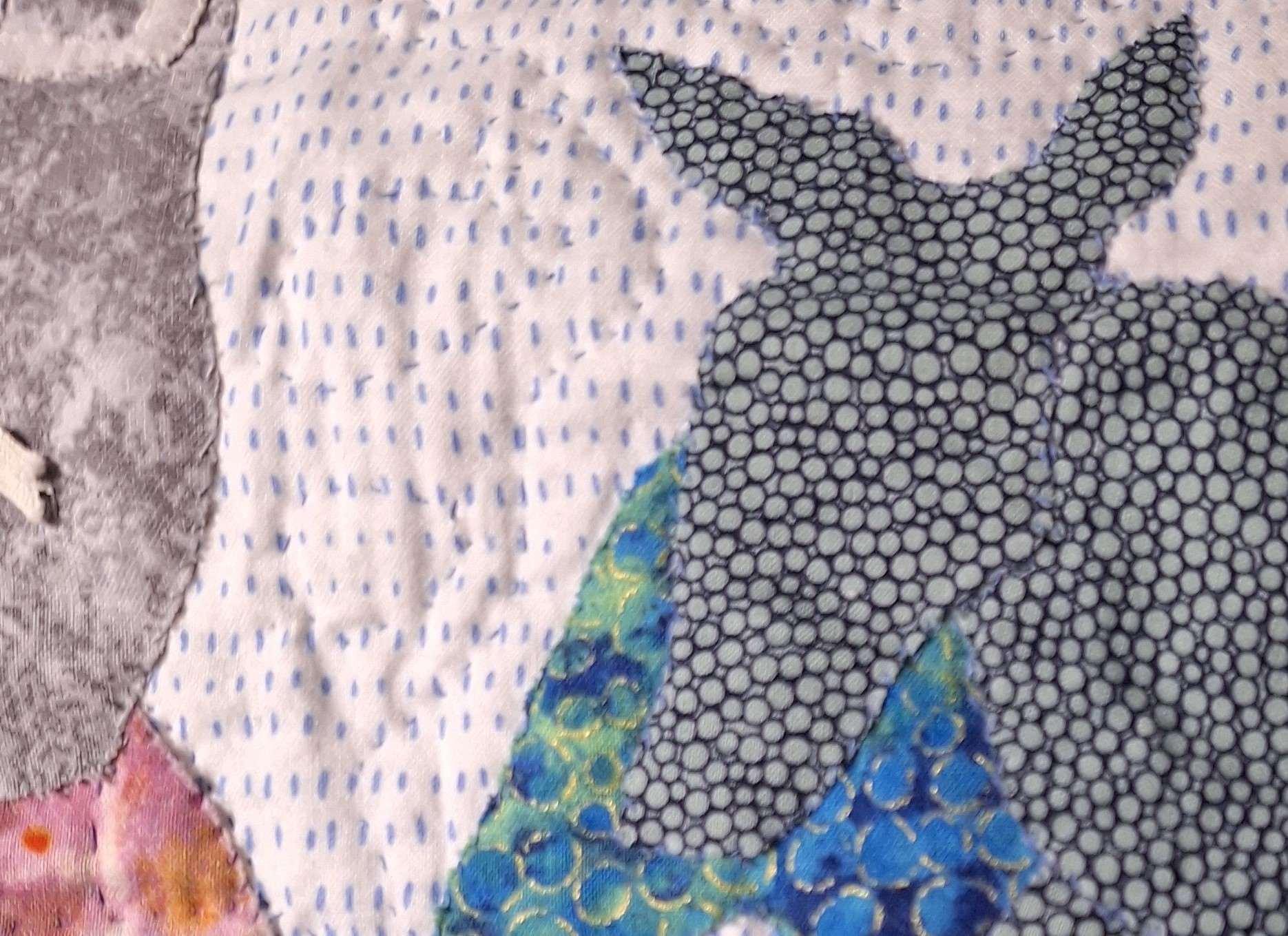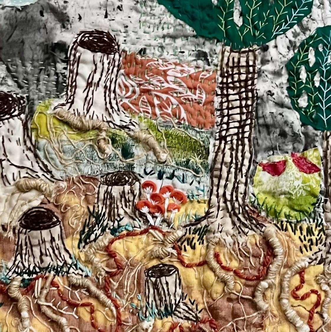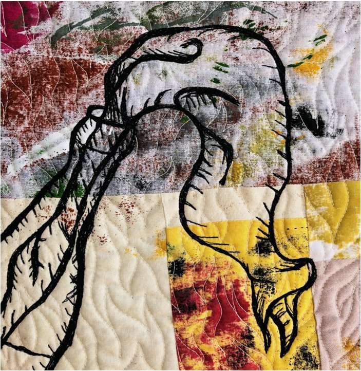 Improvpiecing,threadpainting,fabricpainting, freemotionquilting. Cottonfabric,cottonthread,fabricpaint.