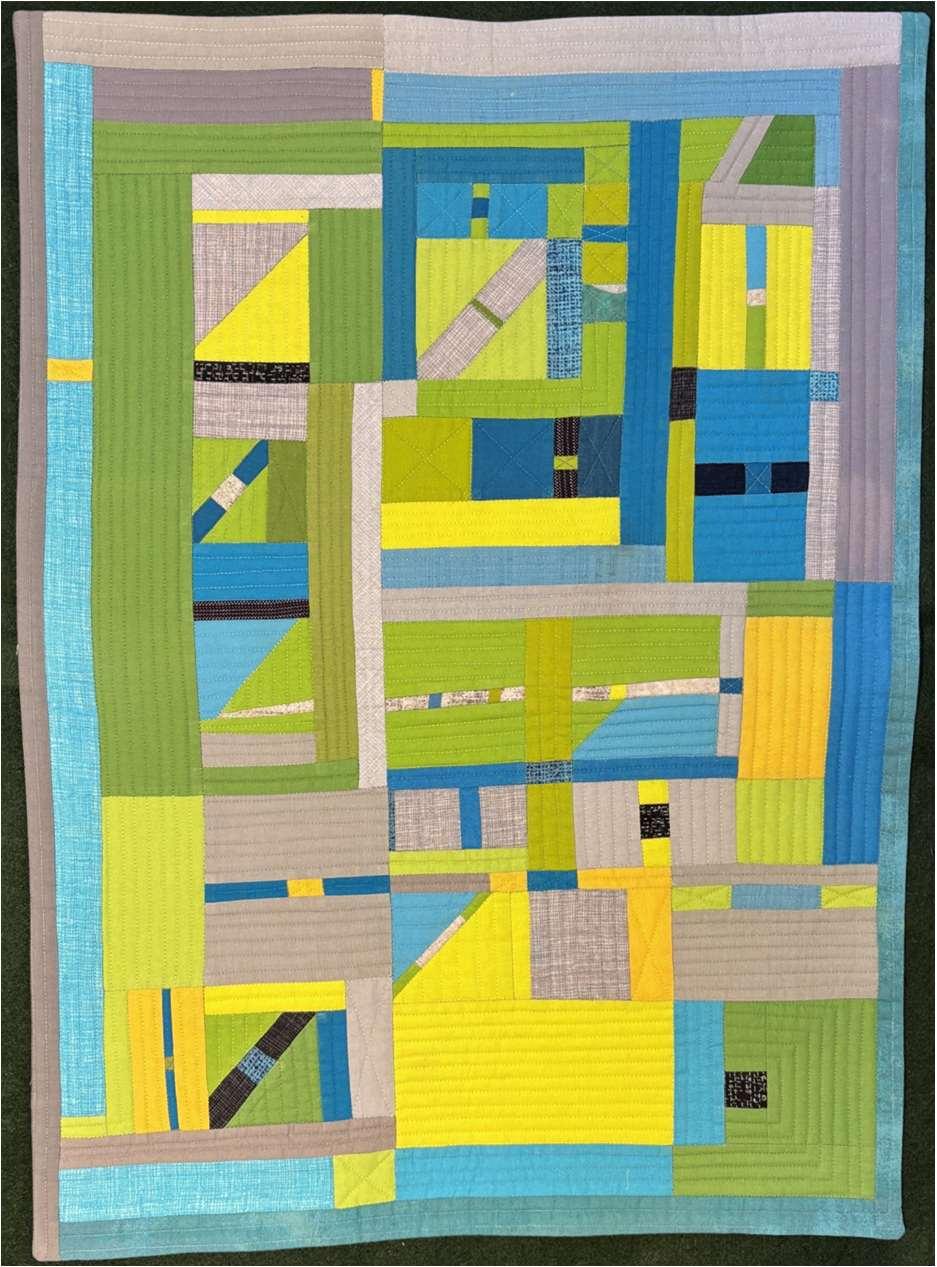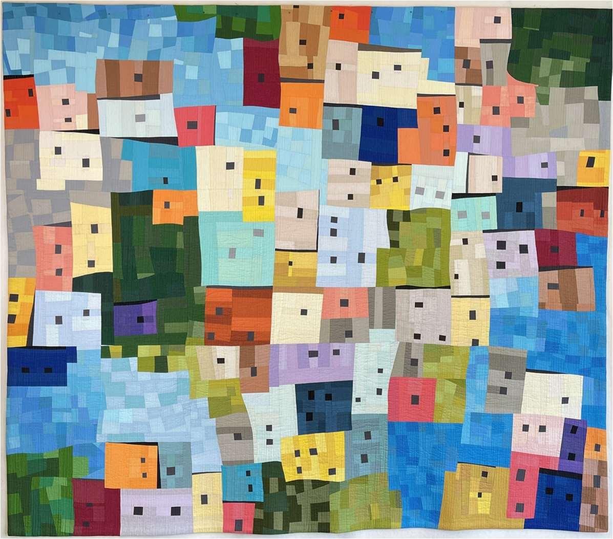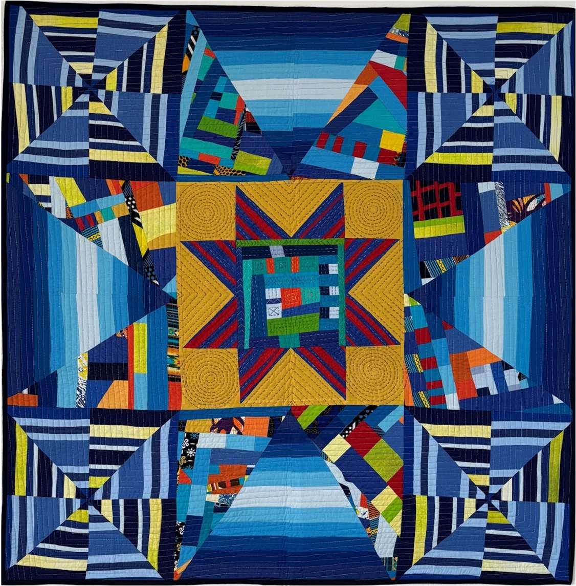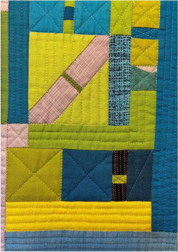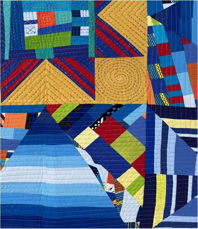 I’velivedhalfmylifeintwocultureswhile becomingascientist,Uruguay,whereIembraced fibersdespitetheir“feminine”label,andtheU.S., whereIfoundquilting.Thispiecehonors modernistJoaquínTorresGarcíaand improvisationalquilterGwenMarston.