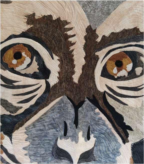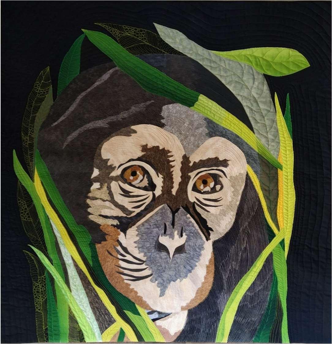 Asabiologistandquilter,Imergemypassionsto raiseawarenessofnatureandenvironmentalissues. ThisquilthonorsIvan,achimpanzeefreedafter40 yearsincaptivity,nowlivingpeacefullyinaMadrid sanctuary.