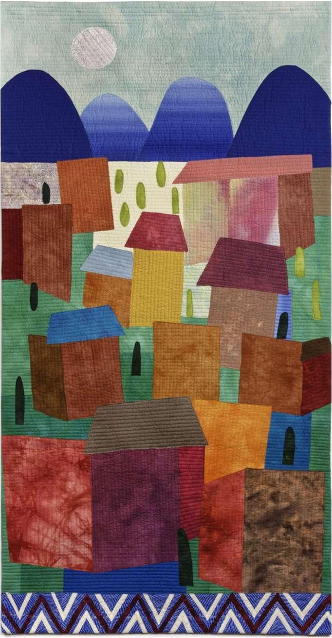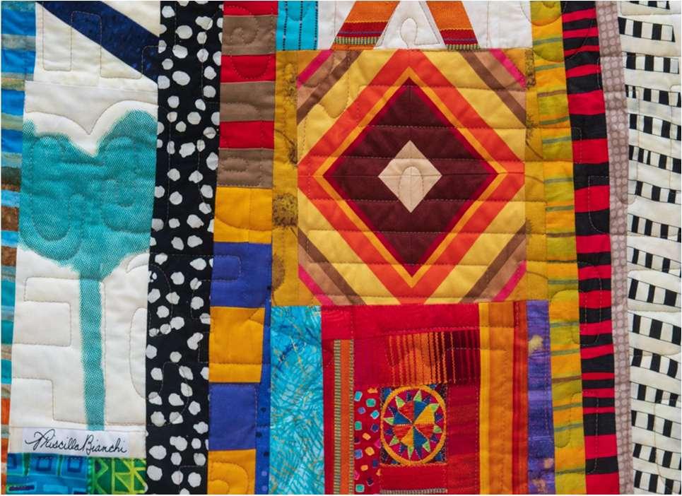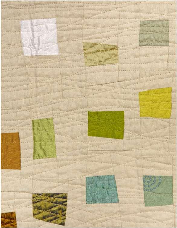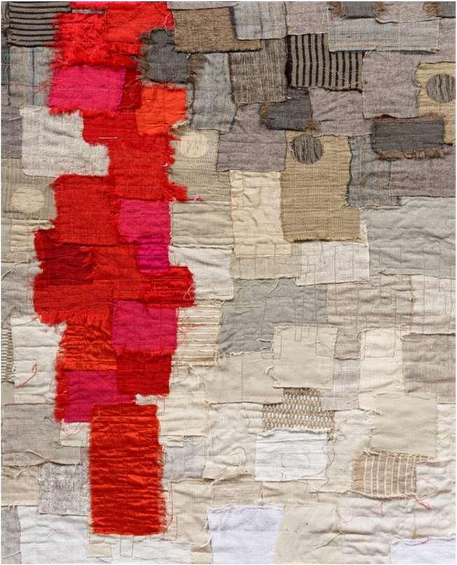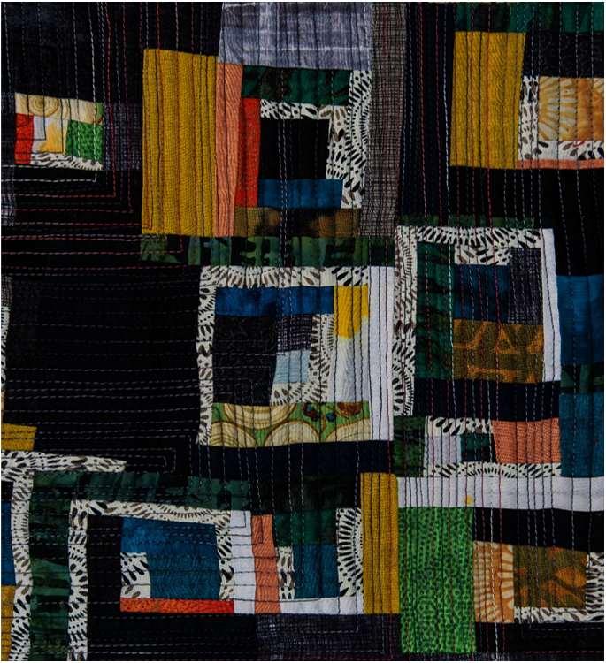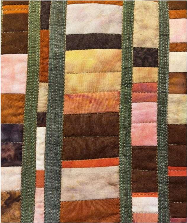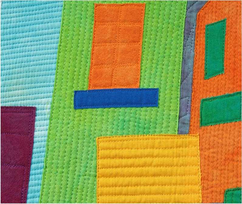 Improvisationalpiecing,collage,paperpiecing, handembroidery,machineandhandquilting.