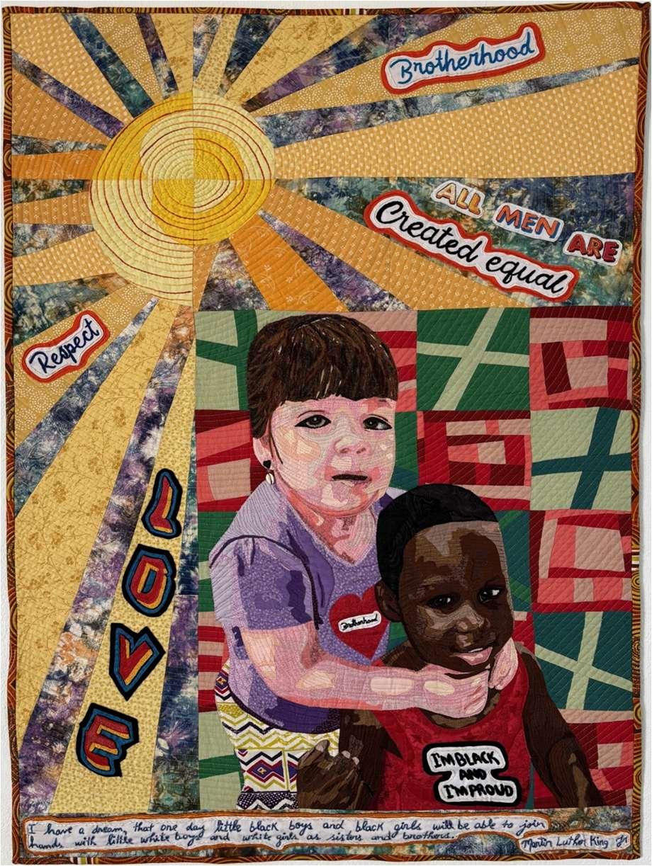 ApersonallifeexperiencewithmysonandMartin LutherKing’s“IHaveaDream”inspiredthisquilt. Itremindsusthatweareallcreatedequal,loveis thekeytorespect.