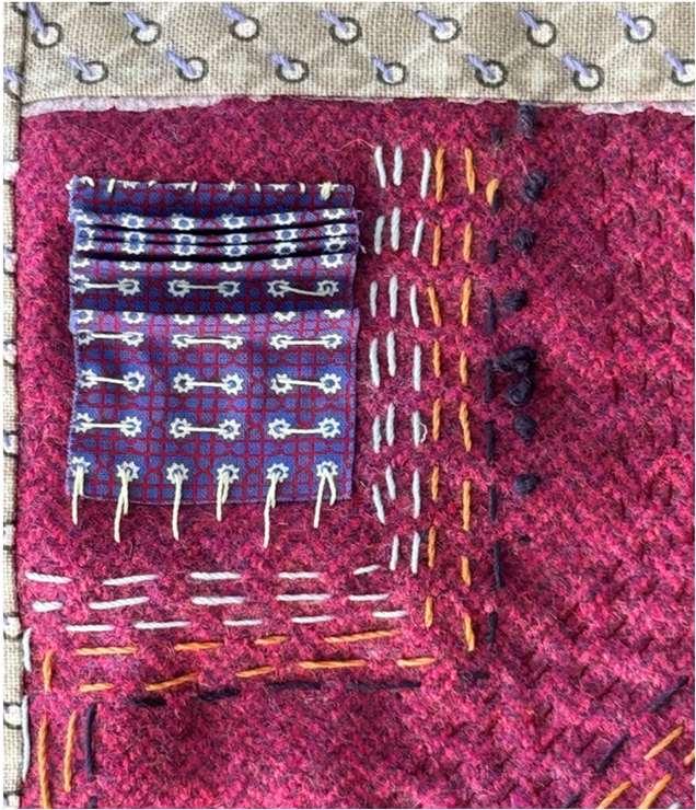Eco-dyedcottonfabrics,silk,recycledties, assortedthreads.