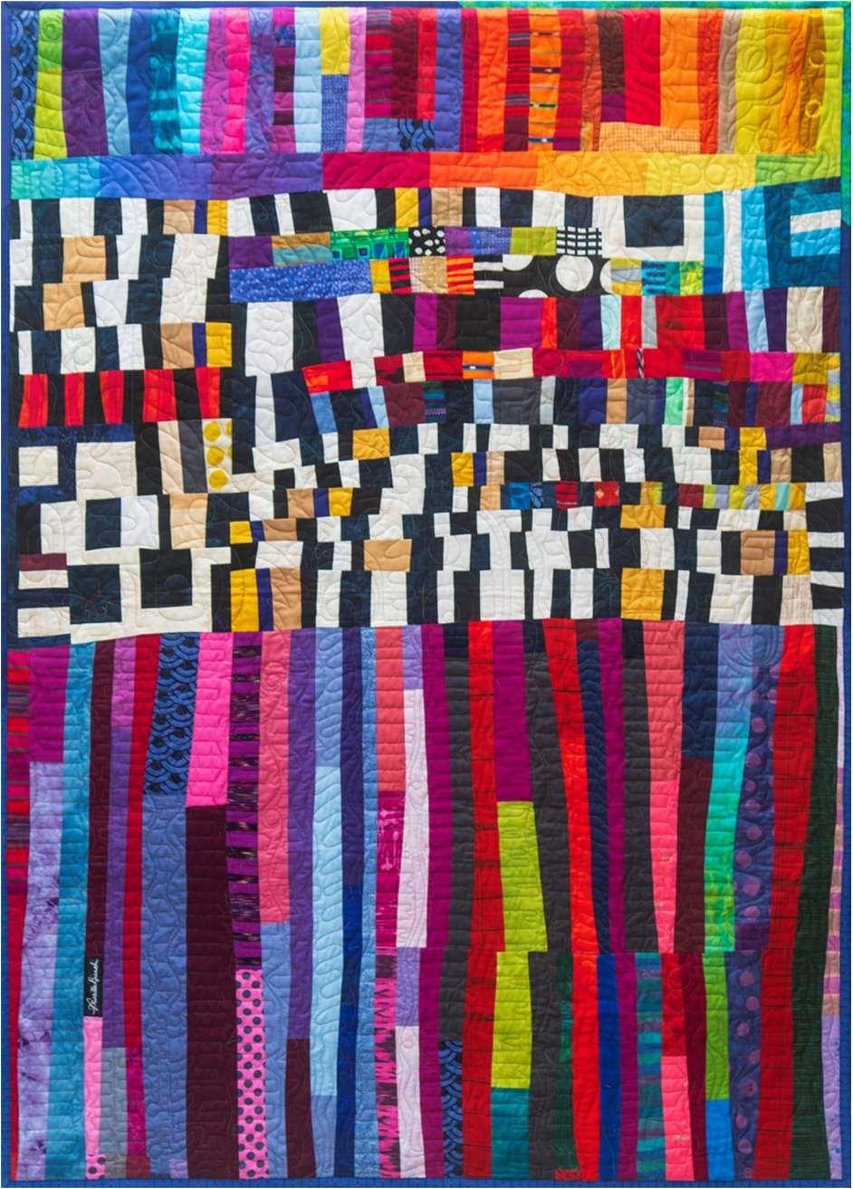 Thispiece,designedandmachinepiecedbyme,and long-armquiltedbyLauraLeeFritz,depictsaMayan huipil.