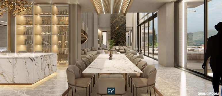 had great creative freedom and was allowed to play with my imagination executing details such as skylights on the floor of the pool which is located above a bar, creating an interesting play of lights; fully functional herbaria in the kitchen, constellations in reflecting pools, main kitchen with sintered stone, latest generation appliances and a hidden window that serves to connect the main kitchen with a second hidden kitchen; clothing shoot that connects the main dressing room with the clothing area and a sculptural central staircase