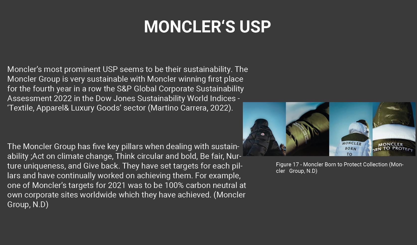 Figure 17 -Moncler born to protect collection (Moncler Group, N.D) https://www.monclergroup.com/en/sustainability/think-circular-bold/born-to-protect-collection