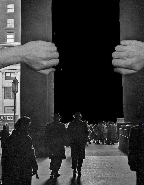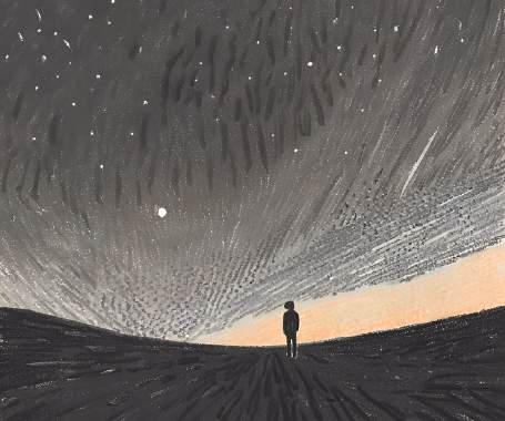 These drawings capture the emot onal journey of teenage Middle Eastern asylum seekers from escaping war to arriving on the other side of the world The first piece reflects their struggle to peel back a broken sky in search of hope The second shows the ongoing chal enges of resettlement framed beneath a shared sky that holds both trauma and prom se