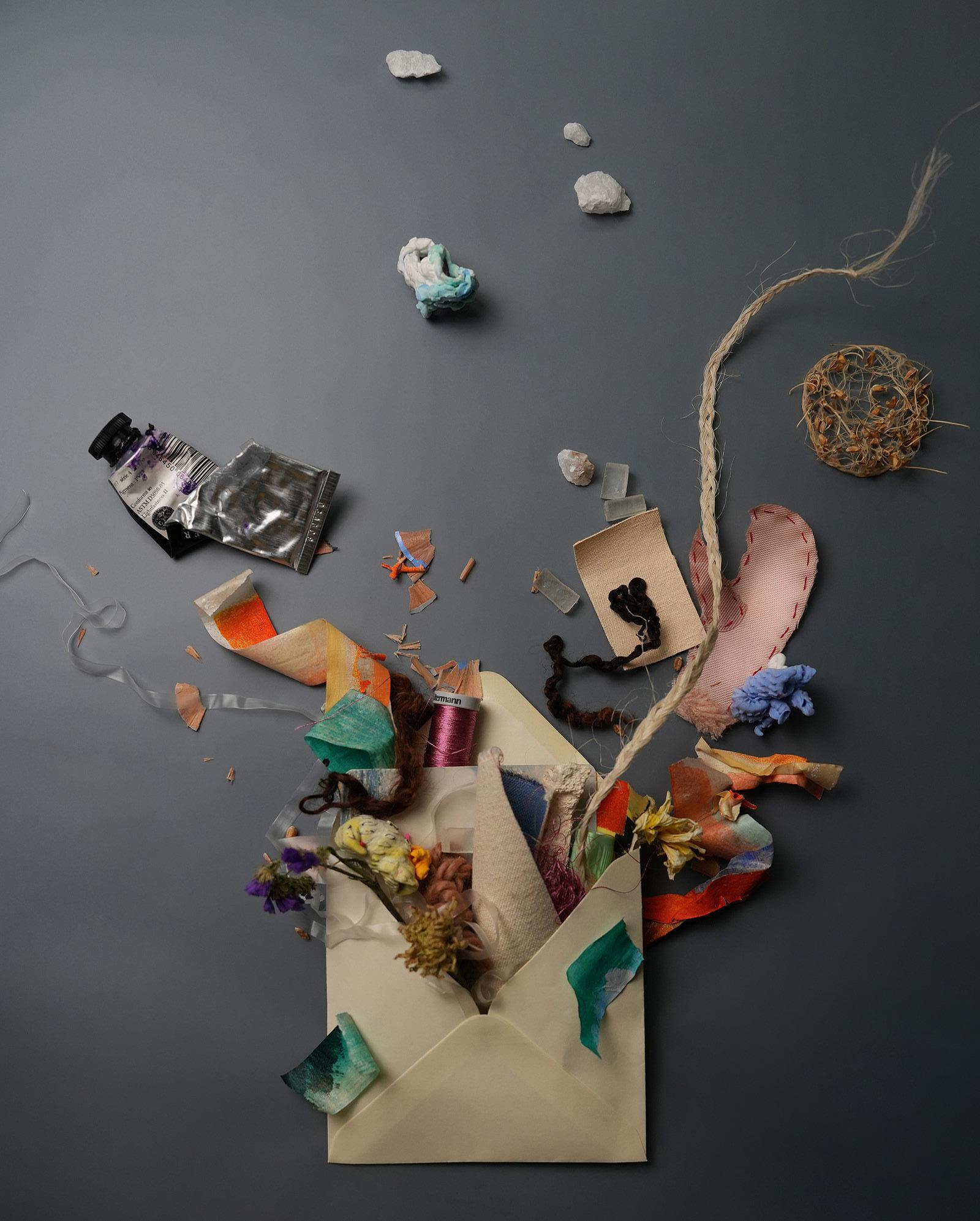 Material exploration drives Sophie Mei’s work, focusing on how materials interact to create psychophysical responses. She investigates matter’s transformation through processes such as growing salt crystals and working with amorphous, decomposing substances.