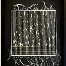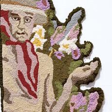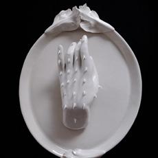 Sonny Peters works with knit and textiles, using biomaterials such as bones, blood, and hair. His macabre fascination with the body and spirituality shapes a personal process where he fully immerses himself, ‘method-acting’ his ideas.