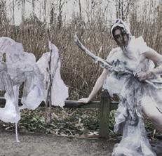Isobel Dickens is a womenswear designer exploring fragmented memory and the spectral presence of buildings, statues and objects. Inspired by Thanet’s changing landscape, Isobel uses found objects and unusual materials to create bold, exaggerated silhouettes.