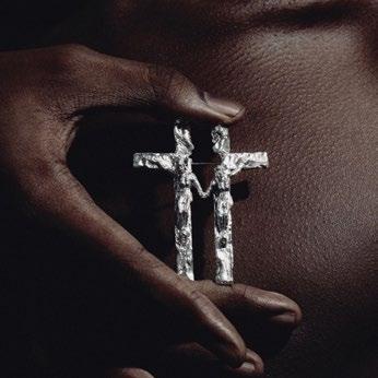 Sonny Peters works with knit and textiles, using biomaterials such as bones, blood, and hair. His macabre fascination with the body and spirituality shapes a personal process where he fully immerses himself, ‘method-acting’ his ideas.