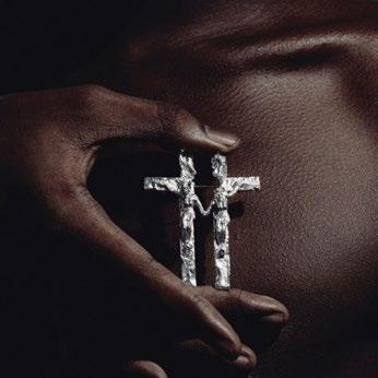 Sonny Peters works with knit and textiles, using biomaterials such as bones, blood, and hair. His macabre fascination with the body and spirituality shapes a personal process where he fully immerses himself, ‘method-acting’ his ideas.