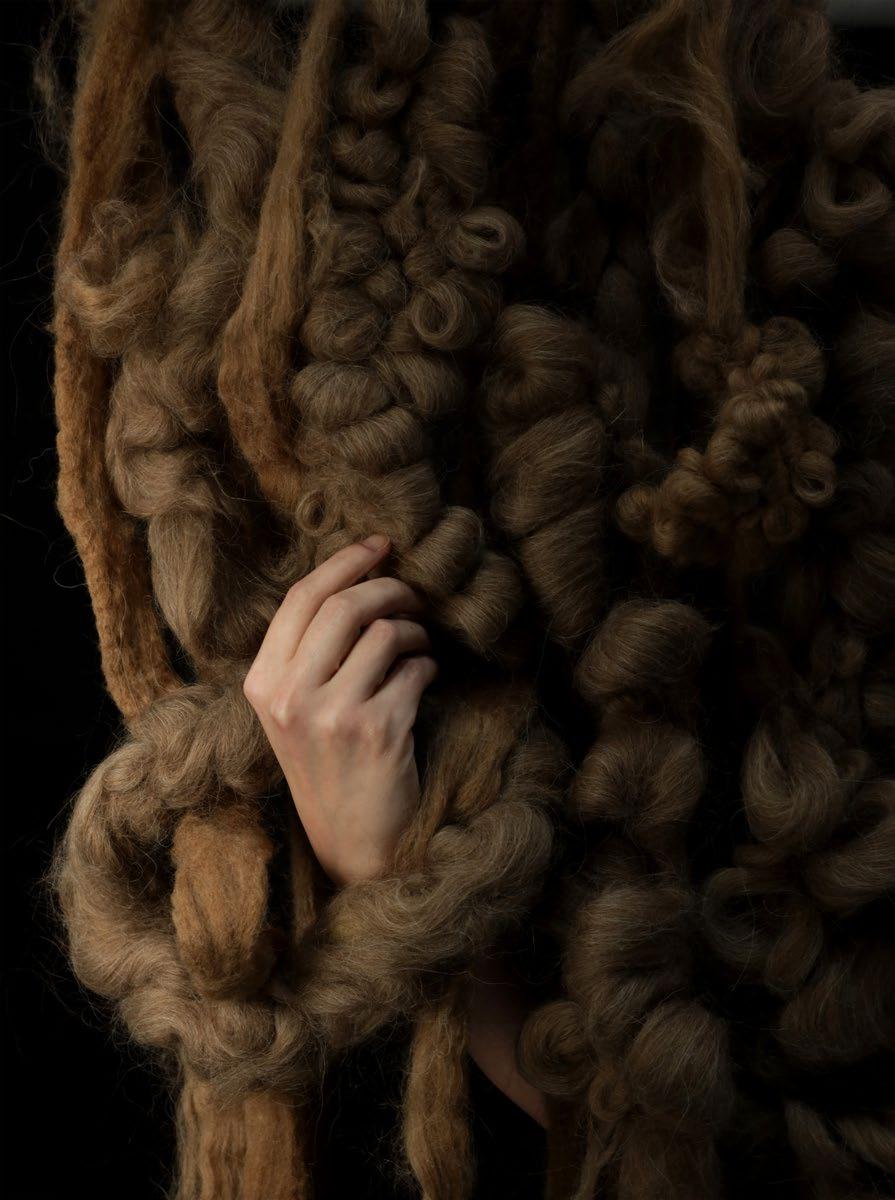 Sonny Peters works with knit and textiles, using biomaterials such as bones, blood, and hair. His macabre fascination with the body and spirituality shapes a personal process where he fully immerses himself, ‘method-acting’ his ideas.