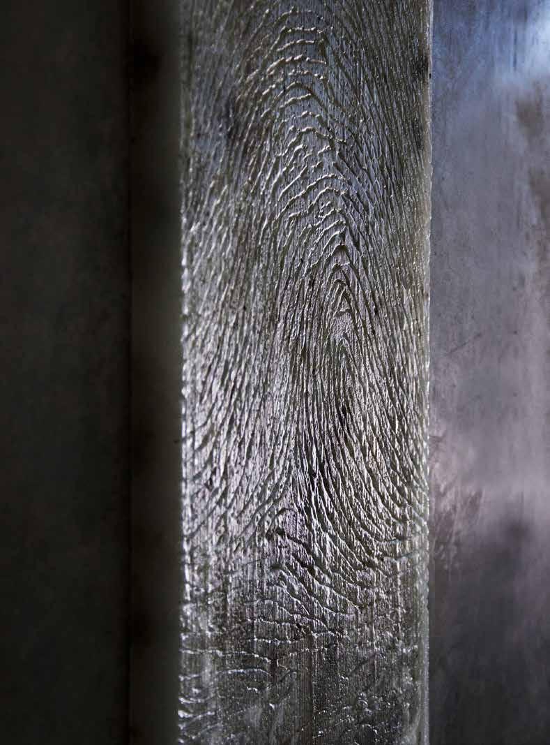 La grande impronta nasce direttamente dalla Terra e si eleva creando un fitto bosco di elementi che descri-vono tale elevazione. Essa inoltre si relaziona con gli alberi tra cui è stata generata, con i quali si crea una fluida connessione.