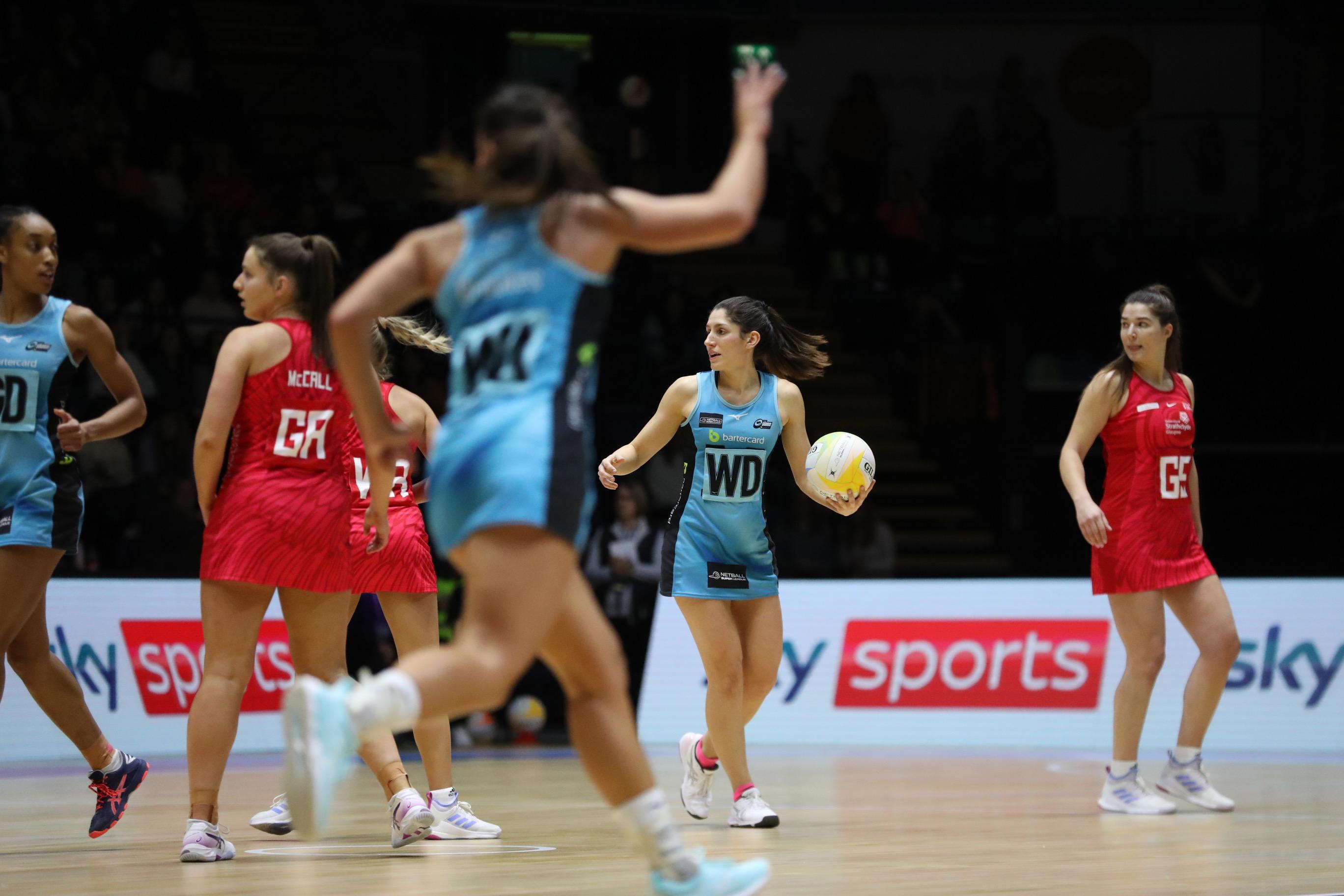 This battle with last season’s Netball Super League runners up was the quintessential ‘game of two halves’ as a handful of offensive errors in the opening fifteen left the home side with an almost impossible task in the remaining three quarters.