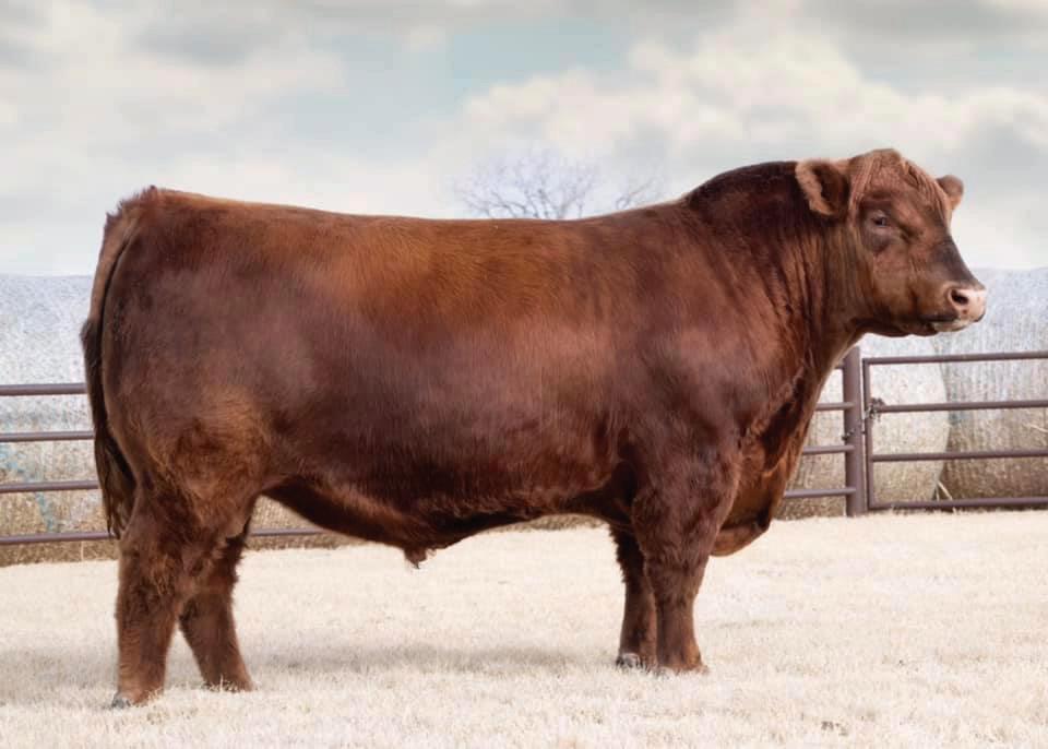 DUFF FEARLESS 20123 – Has not been on the open market EVER and only sold through the Power Plus Sale one time and averaged over $300.00 Per straw! You want to talk about stre---tch, this bull has it. All wrapped in a superbly stylish design, Fearless dominates with his length of spine, width over his topline and hip, and moves flawlessly. When you first lay eyes on him, it’s truly hard to grasp the overall muscle mass he has from front to back, carrying it with ease. I would venture to say he stands in a league all his own. With American Angus Association opening their doors to the Red Angus breed by accepting homozygous black animals, Fearless is routed to make a huge impact. He is truly an animal that can redefine Angus cattle, especially with the dominating force of his dam.