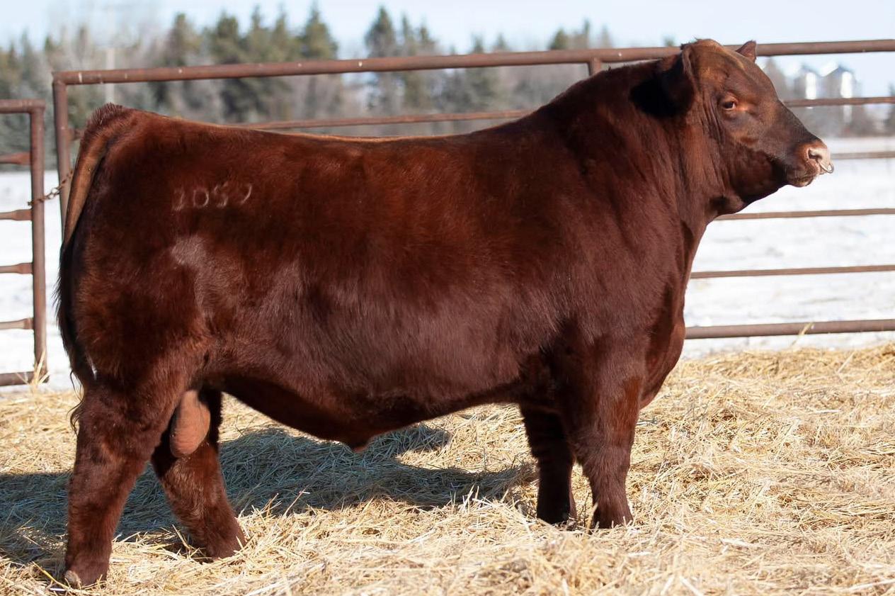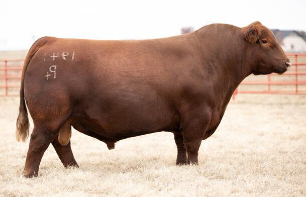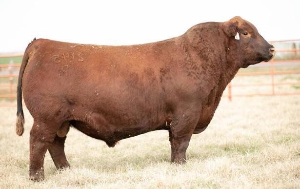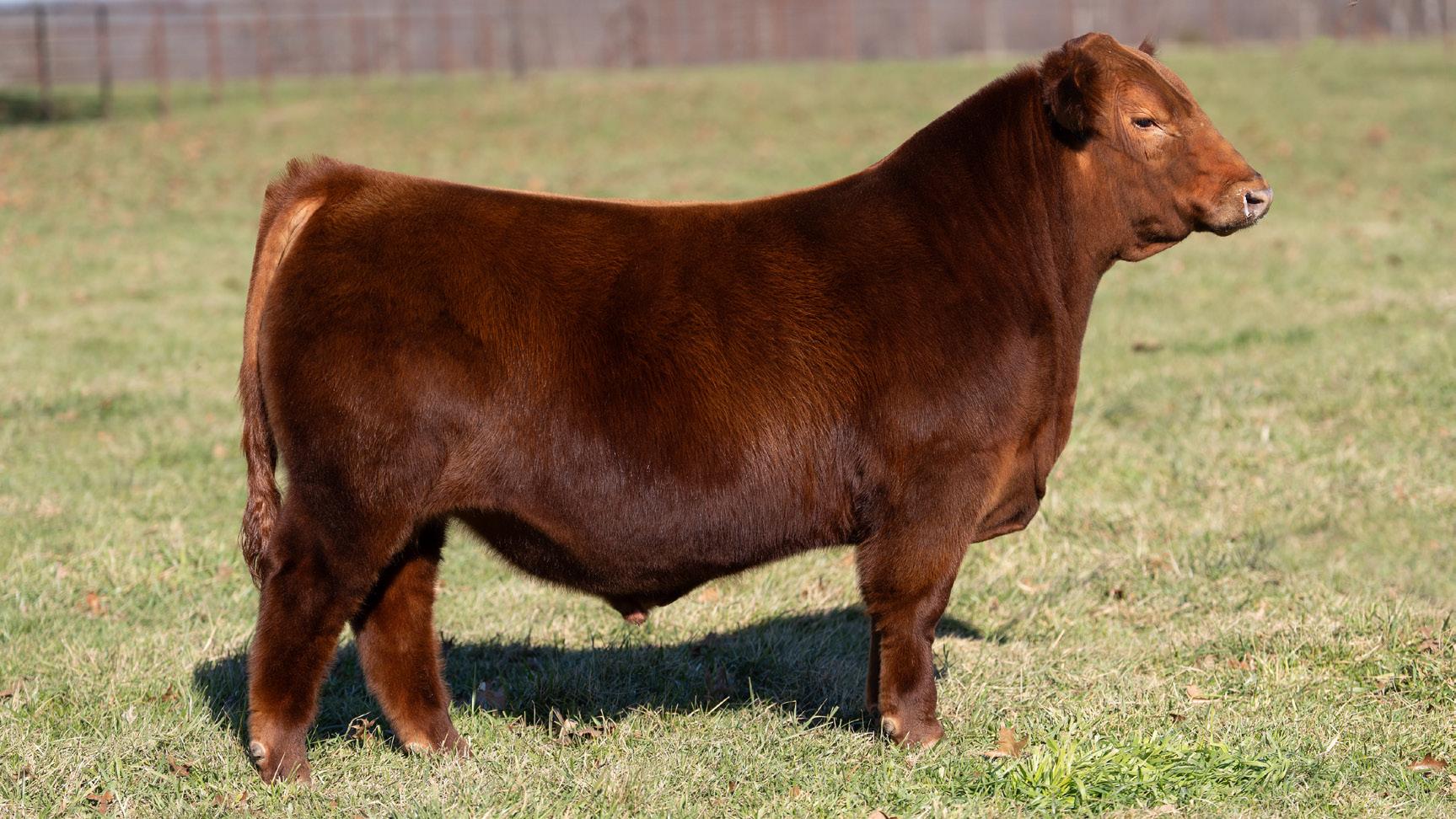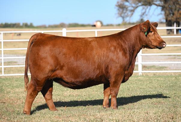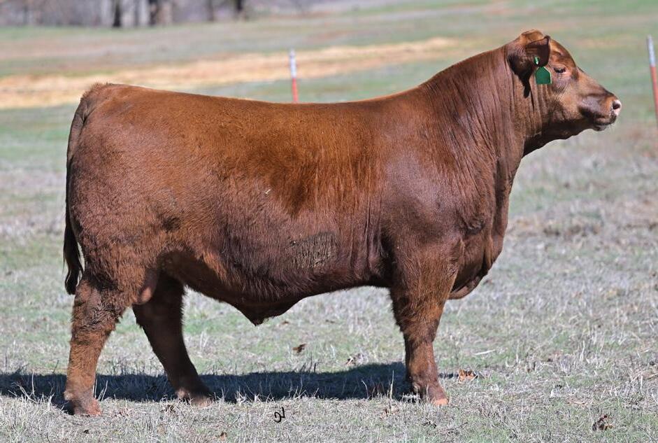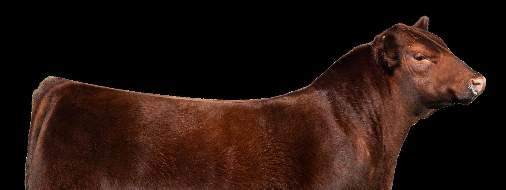 A TRUE POWERHOUSE, ONE THAT IMMEDIATELY CATCHES YOUR ATTENTION AT FIRST GLANCE! THE OVERALL DIMENSION, BOLD SPRING OF RIB, AND A MASSIVE TOPLINE THAT RUNS DEEP INTO HIS LOWER STIFLE. VITTORIO IS A LEGIT OUTLIER, CARRYING A -2.4 FOR BW, A +91 FOR WW, AND A +141 FOR YEARLING GROWTH! WE THINK HE IS JUST GETTING WARMED UP FOR WHAT HE CAN ACTUALLY CONTRIBUTE TO THE RED ANGUS BREED. IF YOU WANT TO MAKE AN IMPACT, VITTORIO IS THE KEY INGREDIENT YOU HAVE BEEN LOOKING FOR! VAST OPPORTUNITIES FOR SEMEN SALES AND FOR PRODUCING POWER BEEF BULLS AND FRONT PASTURE REPLACEMENTS.