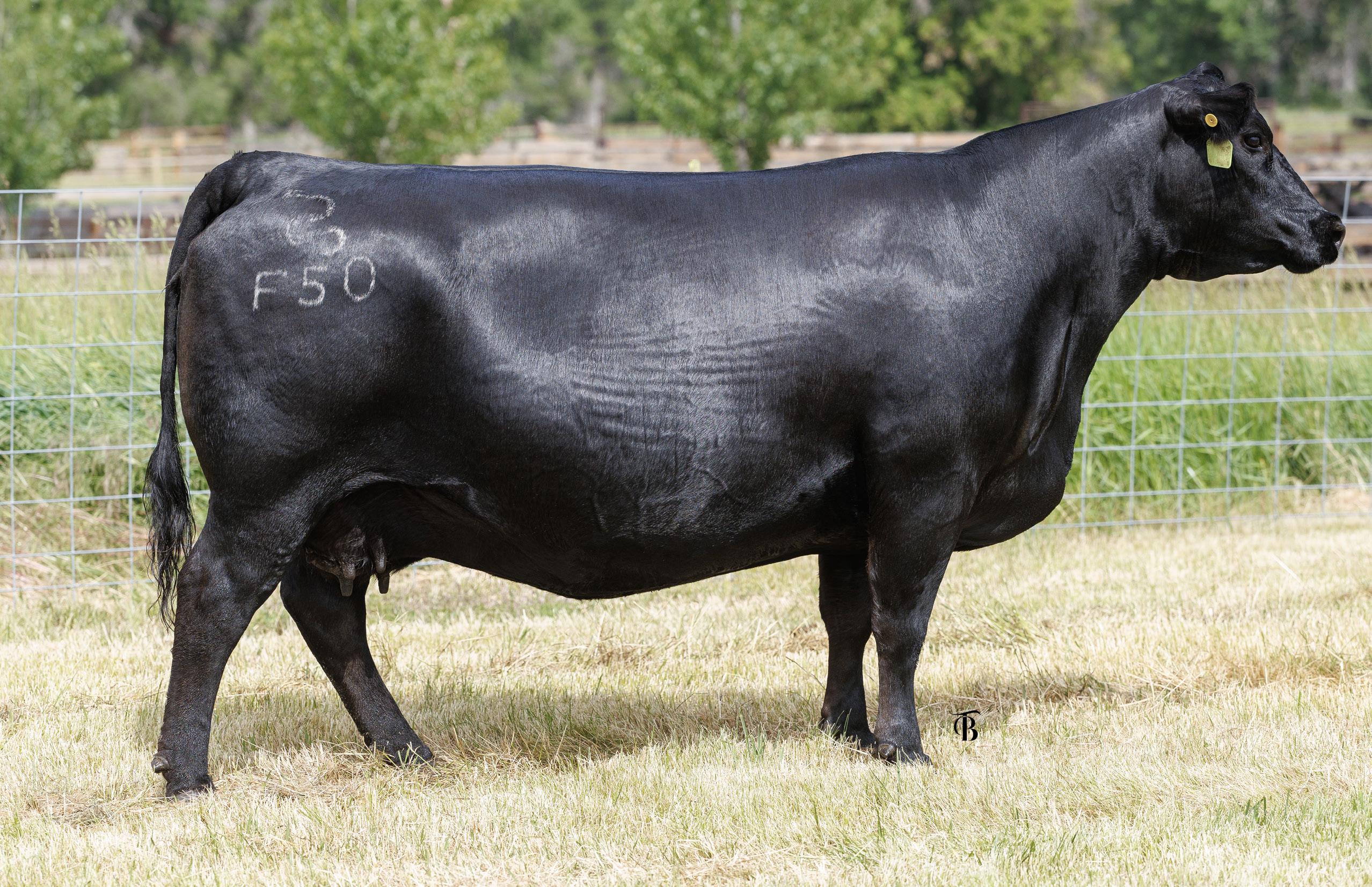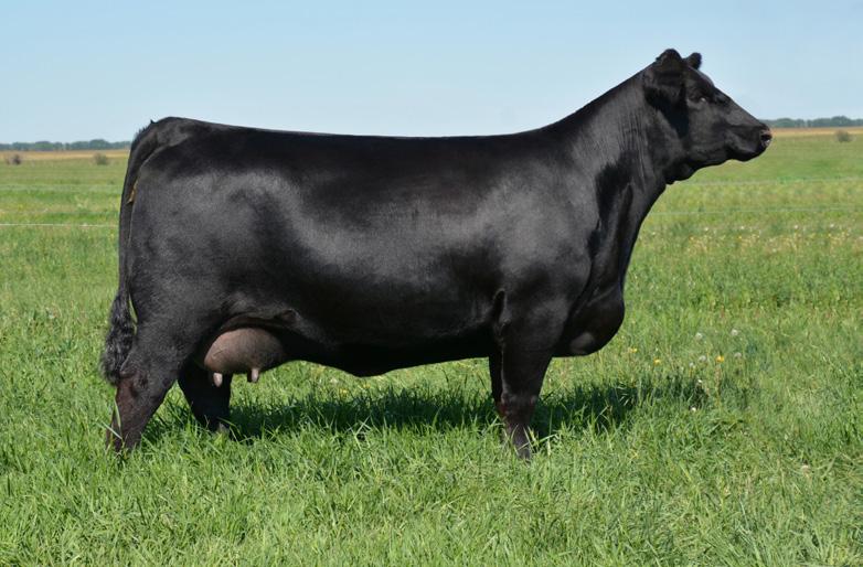 BAR-E-L BRIDE 28C WAS THE $100,000 HIGH SELLER AT THE 10TH ANNUAL BROOKING ANGUS RANCH OPEN BOOK INVITATIONAL TO COLEMAN ANGUS, BROOKING ANGUS RANCH AND CANADIAN DONORS. SHE WAS A COW WE HAD BEEN FOLLOWING FOR YEARS AT THE RENOWNED BAR-E-L PROGRAM, AND WE KNEW WE NEEDED TO OWN HER. THE RIGHT TO FLUSH 28C SOLD IN 2023 FOR A STAGGERING $75,000, AND A DAUGHTER RECENTLY BROUGHT $30,000 USD AT COLEMAN ANGUS. HER POPULARITY NORTH AND SOUTH OF THE BORDER CONTINUES TO INCREASE WITH ENDLESS POTENTIAL. THE NEAR-PERFECT PHENOTYPE YOU FIND IN 28C IS IMPRECCABLE, WITH A BEAUTIFUL HEAD, LONG AND ATTRACTIVE FRONT END, A LEVEL, BROAD TOP WITH IMPRESSIVE BODY CAPACITY, AND AN OVERALL LENGTH, ALL WHILE POSSESSING A BEAUTIFUL UDDER AND GOOD FOOT QUALITY.