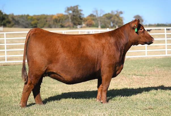 MADE PUBLIC. WE REGARD HIS PROGENY AS SOME OF THE BEST WE’VE SEEN AT SANDRIDGE AND WE ARE HOLDING HIS DAUGHTERS CLOSE AS THEY ARE DEVELOPING TO BE THE TOP END OF OUR NEXT GENERATION. IT IS IMPRESSIVE THE WAY CHARLOTTE 892, THE DAM OF COSMIC, HAS FOUGHT HER WAY TO THE PINNACLE OF OUR DONOR GROUP. 892 IS THE THIRD GENERATION OF A SUPER PRODUCTIVE, RED TOWAW INDEED 104H SIRED COW FAMILY THAT WAS PURCHASED FROM SIX MILE RANCH IN 2010. SHE IS ALSO A HIGHLY MATERNAL FEMALE WITH A GORGEOUS UDDER, HAVING PERFECT TEAT SIZE AND PLACEMENT WHILE MAINTAINING AN IMPRESSIVE AMOUNT OF NATURAL SHAPE AND A BEAUTIFUL SILHOUETTE. IF YOU WANT TO HEAR HOW EXCITED WE ARE ABOUT THE FUTURE COSMIC COWBOY, GIVE US A CALL. FOOTNOTES GET LONG SOMETIMES AND WE’D RATHER YOU HEAR OUR EXCITEMENT IN A CONVERSATION WITH US. - TONY TOLAR