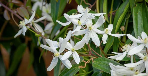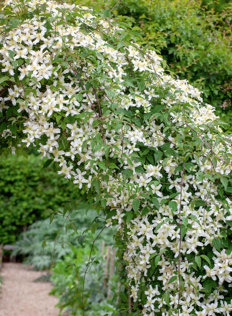 C. montana var. wilsonii Satin white, star-shaped flowers, with incredible scent. Montana varieties are the classic clematis to train up into trees to tumble down from above your head. They are quick-growing and vigorous, covered in flowers for late spring and early summer. 520073