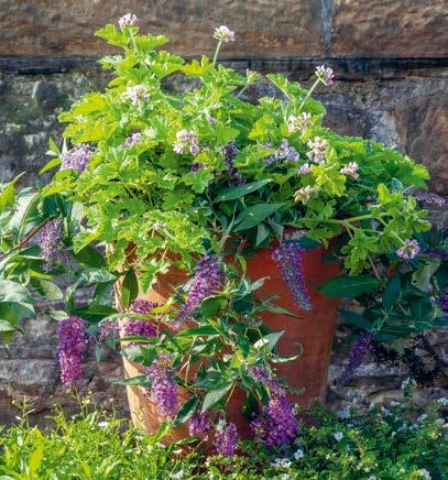 This is the perfect trio in a pot, with a thriller (Pelargonium ‘Attar of Roses’), a spiller (Buddleia ‘Dreaming Purple’) and a filler (Heliotropium arborescens ‘Midnight Sky’), to give you a scented spot anywhere sunny in the garden. 190387