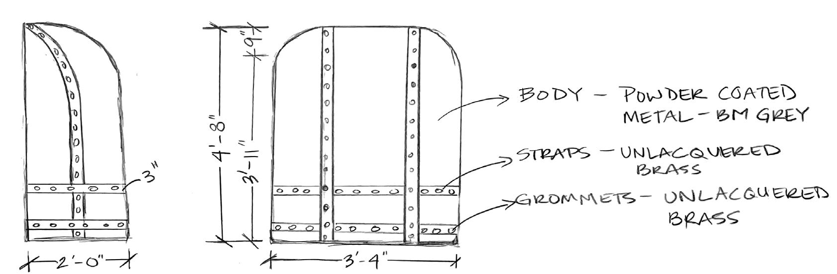 • Window hardware is oil rubbed bronze and curtains are 108” in Kelly Wearstler Cascadia in Basalt.