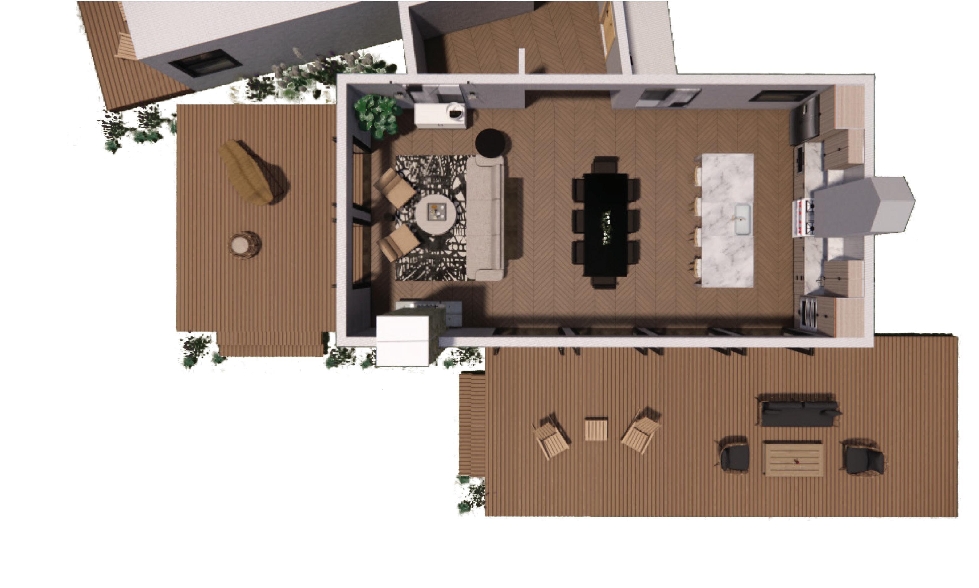 • Create an open concept floor plan that is conducive to hosting and highlights the amazing views.