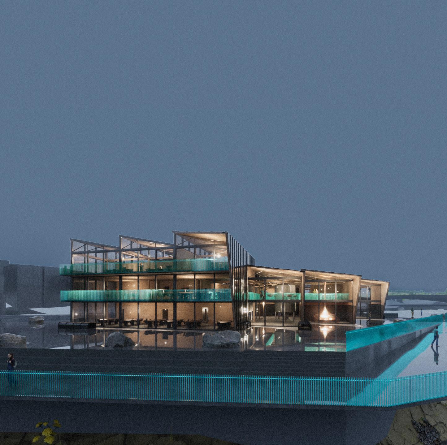 The walkway leads to the three story bar which can be sectioned off for events. Flexibility to change of space is a very important aspect to keep this building useful and relevant in the years to come.