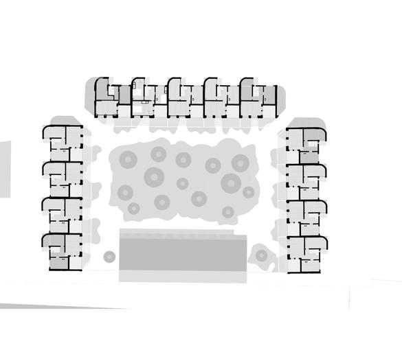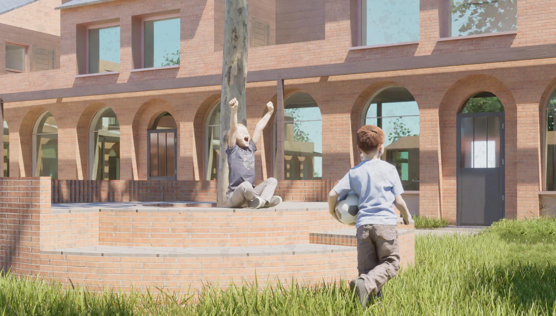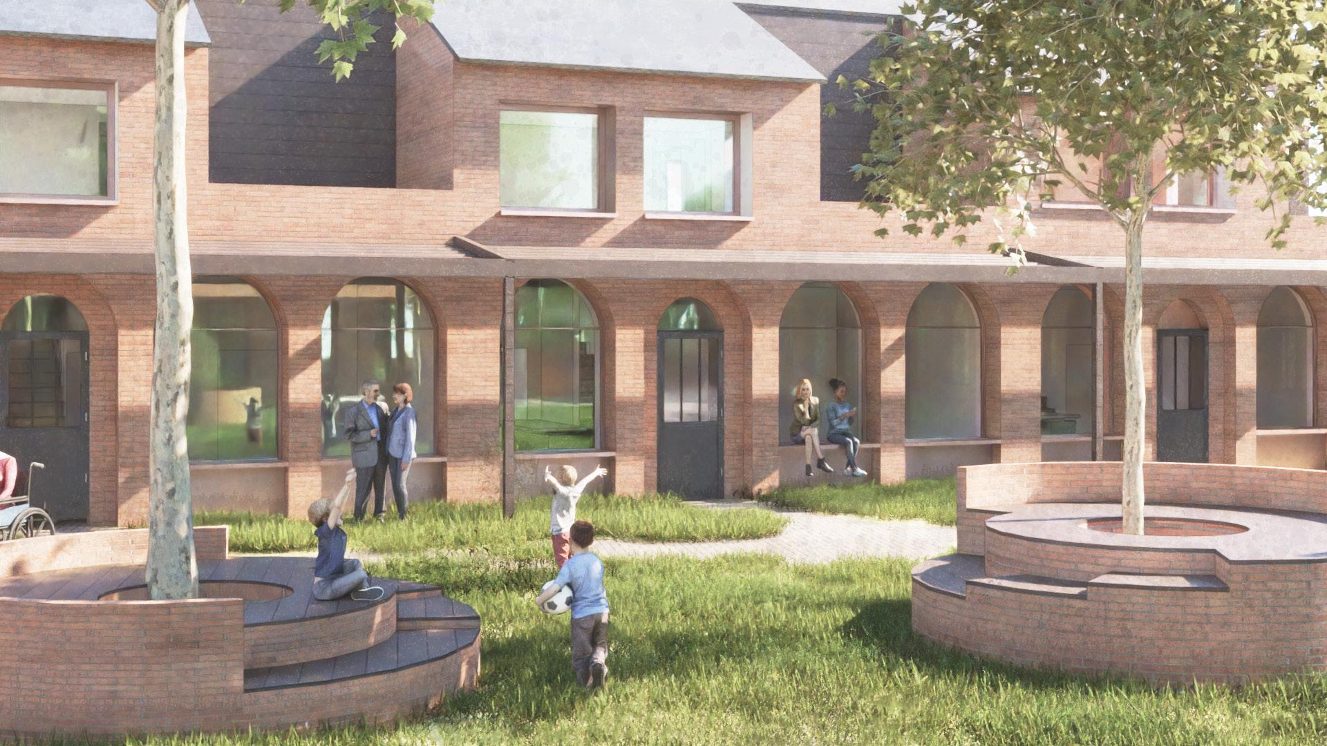 Areas of mixed play in the communal courtyard are overlooked by houses and coworking space.