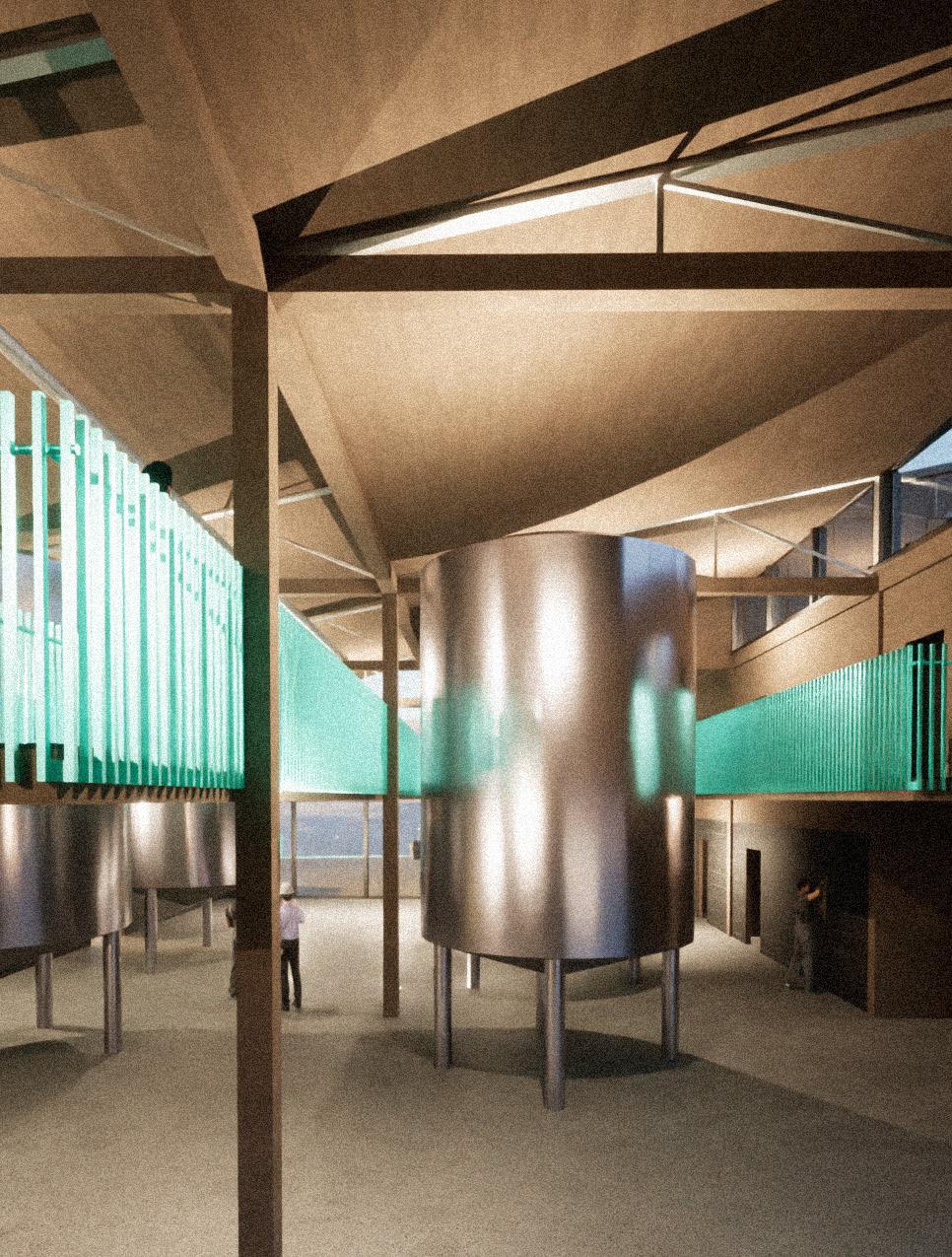 The brewery runs as an example of sustainable process on an industrial scale. The comsumer walks up through the bakery to the brewery to see the beautiful machinery revealed. s