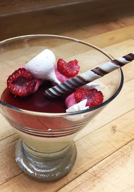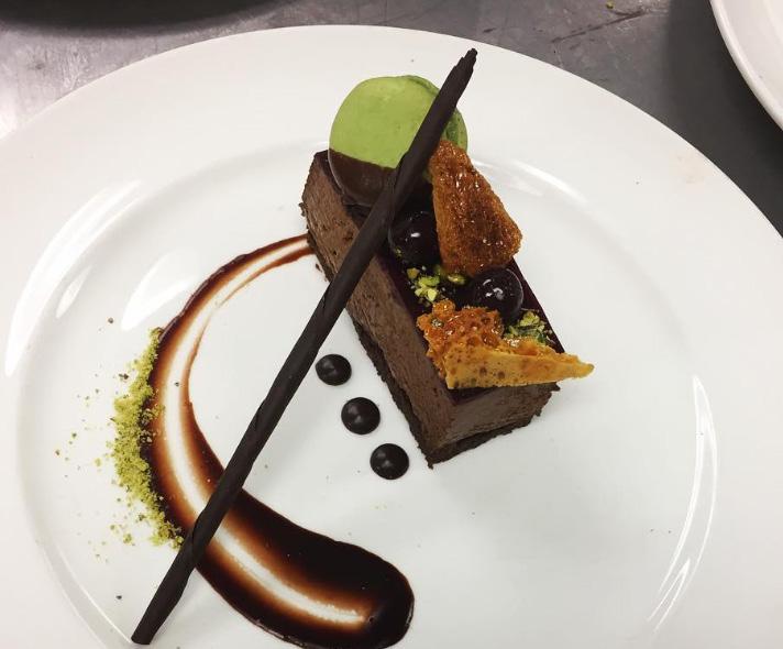 Production de desserts et de pains à l’assiette, les compétences démontrées incluent le tempérage du chocolat, la création de crèmes anglaises, de meringues et de sauces sur assiette.