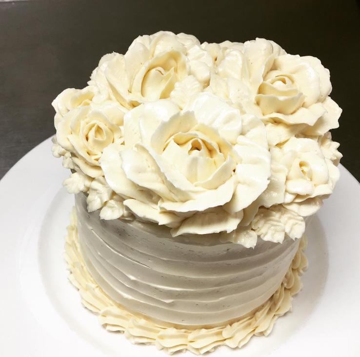 Production et décoration de gâteaux, les compétences démontrées incluent les fleurs et passepoils de crème au beurre, la production et la manipulation de fondants, le passepoil de lettres, la sculpture sur sucre.