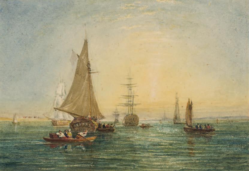 De Loutherbourg became increasingly fascinated by maritime and especially naval subjects and during the 1790s he painted several works celebrating the prowess of the British navy, as well as great maritime disasters. He produced numerous on the spot sketches and studies of boats and ships, at all angles and positions and states of repair, such as the present work. There are several related studies in the British Museum, London, including a beached rowing boat and a study of two small boats with furled sails.
