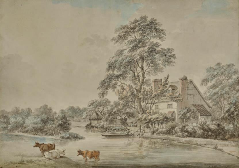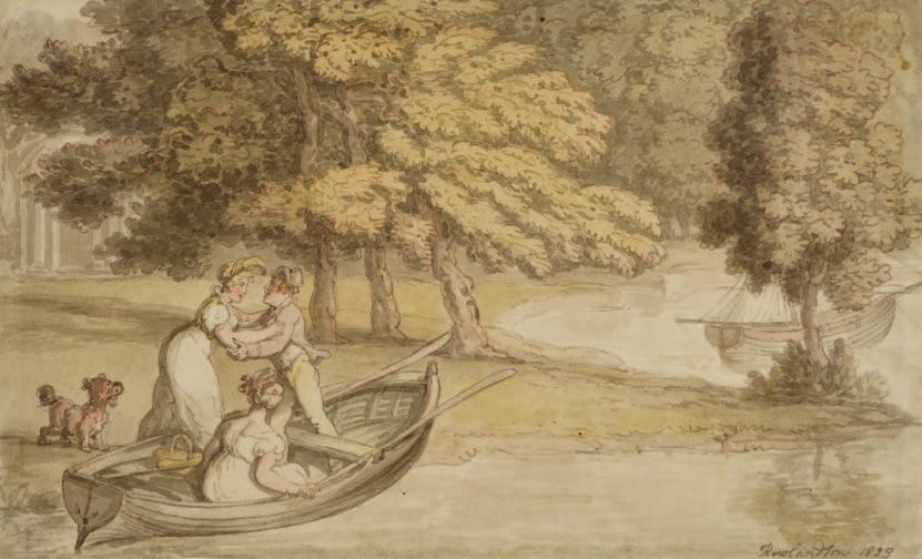 Another version of this watercolour, recorded in the Nettlefold collection, is entitled: ‘Pope's Villa, Twickenham: The Outing’ (see C. Reginald Grundy, A Catalogue of the Pictures and Drawings in the collection of Frederick John Nettlefold, 1937, vol. III). This subject was published in reverse as plate 35 in ‘World in Miniature’ by R. Ackermann in 1817.