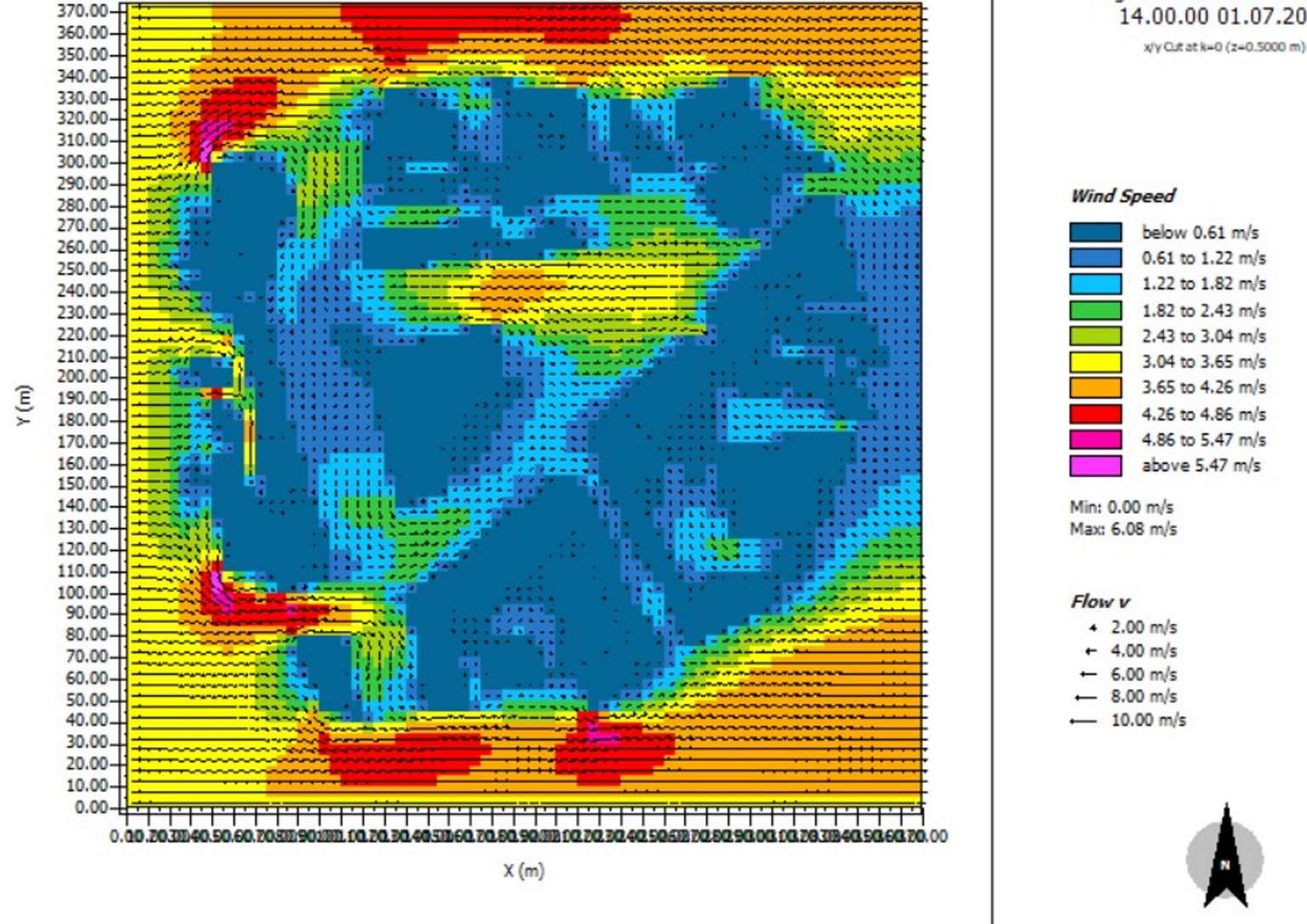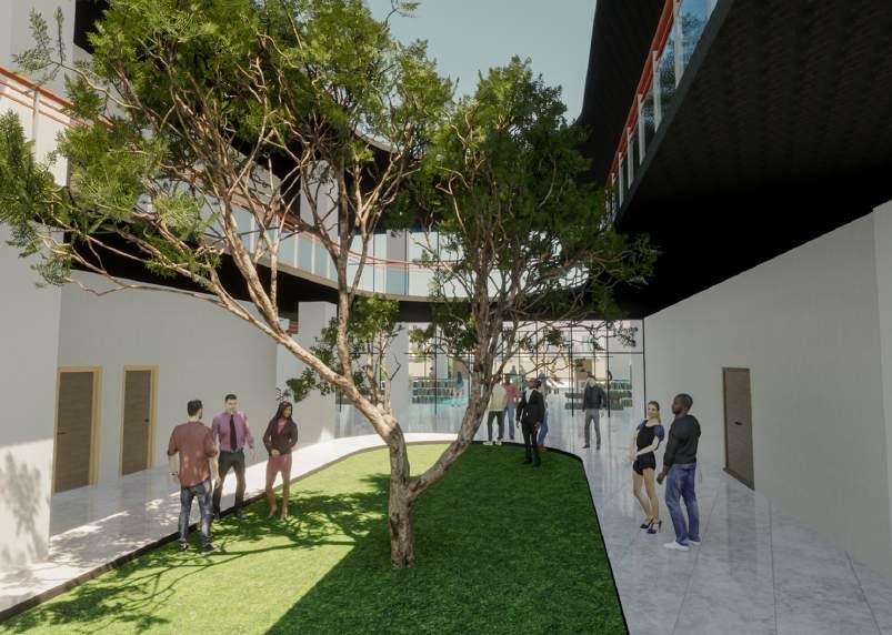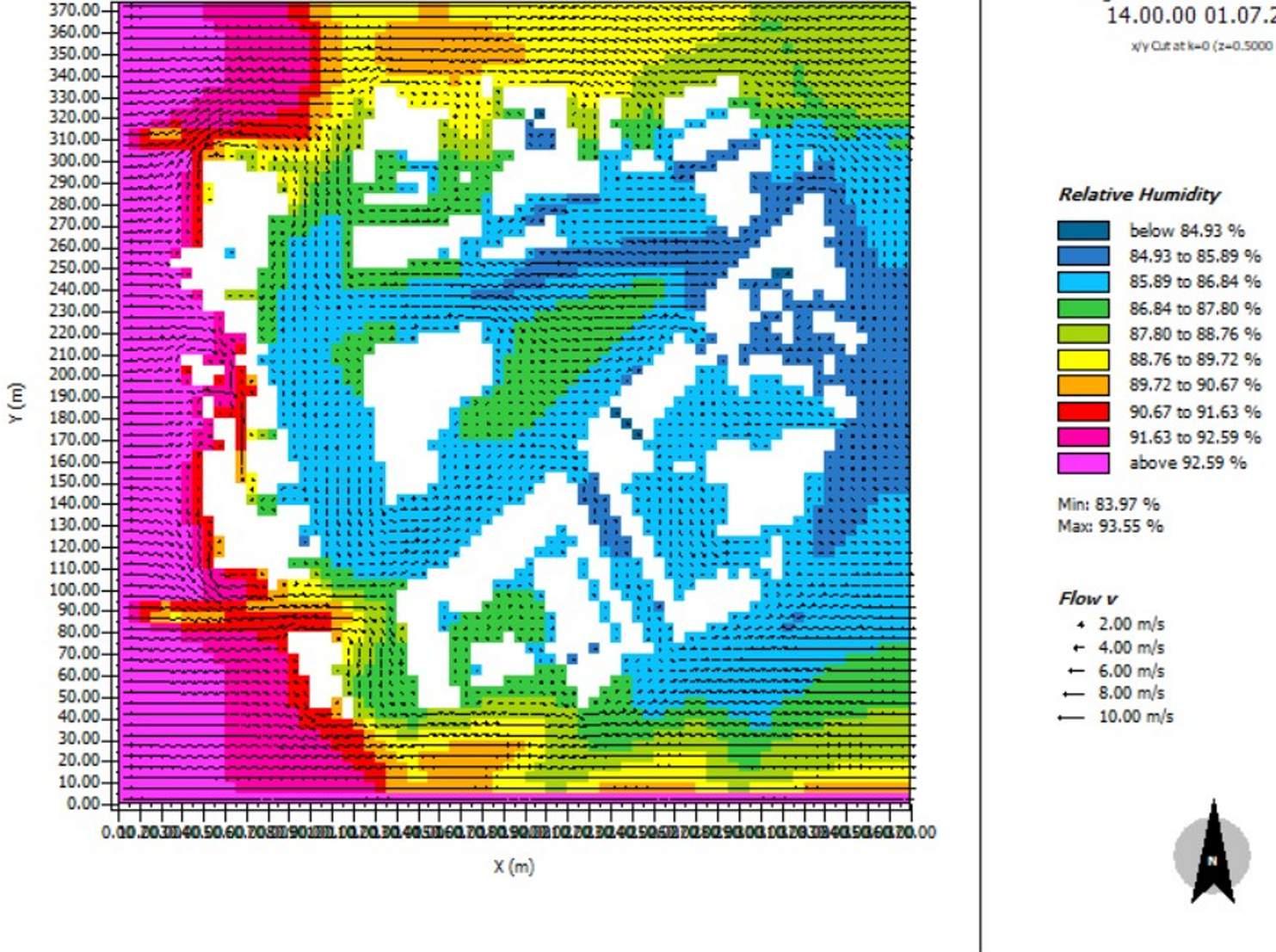 For climate conscious construction, a green building simulation was carried out using Envi-Met, to understand the effect of the building on the urban context. The software uses the three dimensional model of the building with its surroundings to predict how the area would react to the construction of a new building.