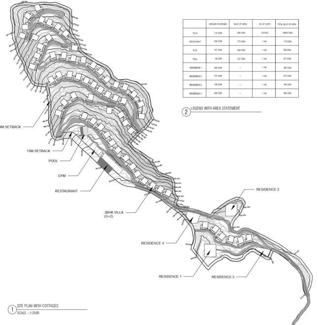 The site located on the picturesque hills of Dehradun, posed as the perfect landscape for tourists who want a break from the city. Individual villas were planned for the location, with a community centre and clubhouse. The site slopes to the North, creating beautiful backdrops for the cottages.