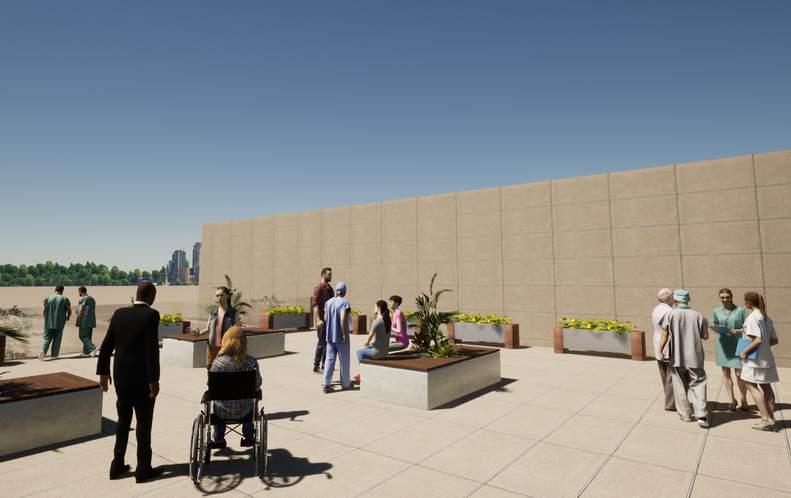 The hospital is designed as a self-sustaining, climate-responsive healthcare facility that prioritizes patient well-being, sustainability, and adaptability.