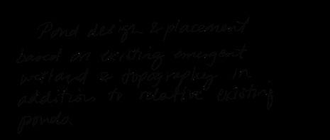 variety of palustrine wetlands. Our design interventions aimed to mitigate the effects of climate change, such as more intense, shorter rain periods and drought conditions, through connectivity, expansion, and buffering, with the goal of enhancing current biodiversity. Inspired by Richard Forman’s ecological theories on patch shapes, and