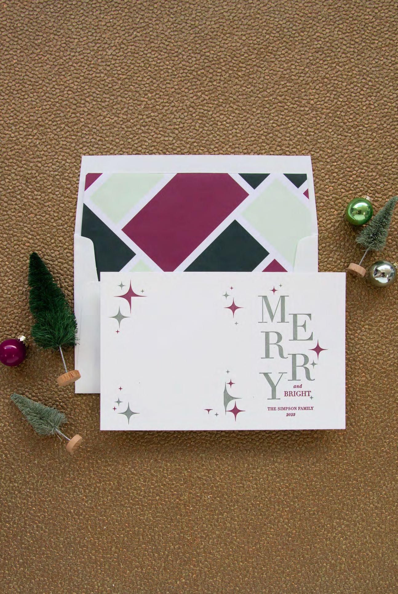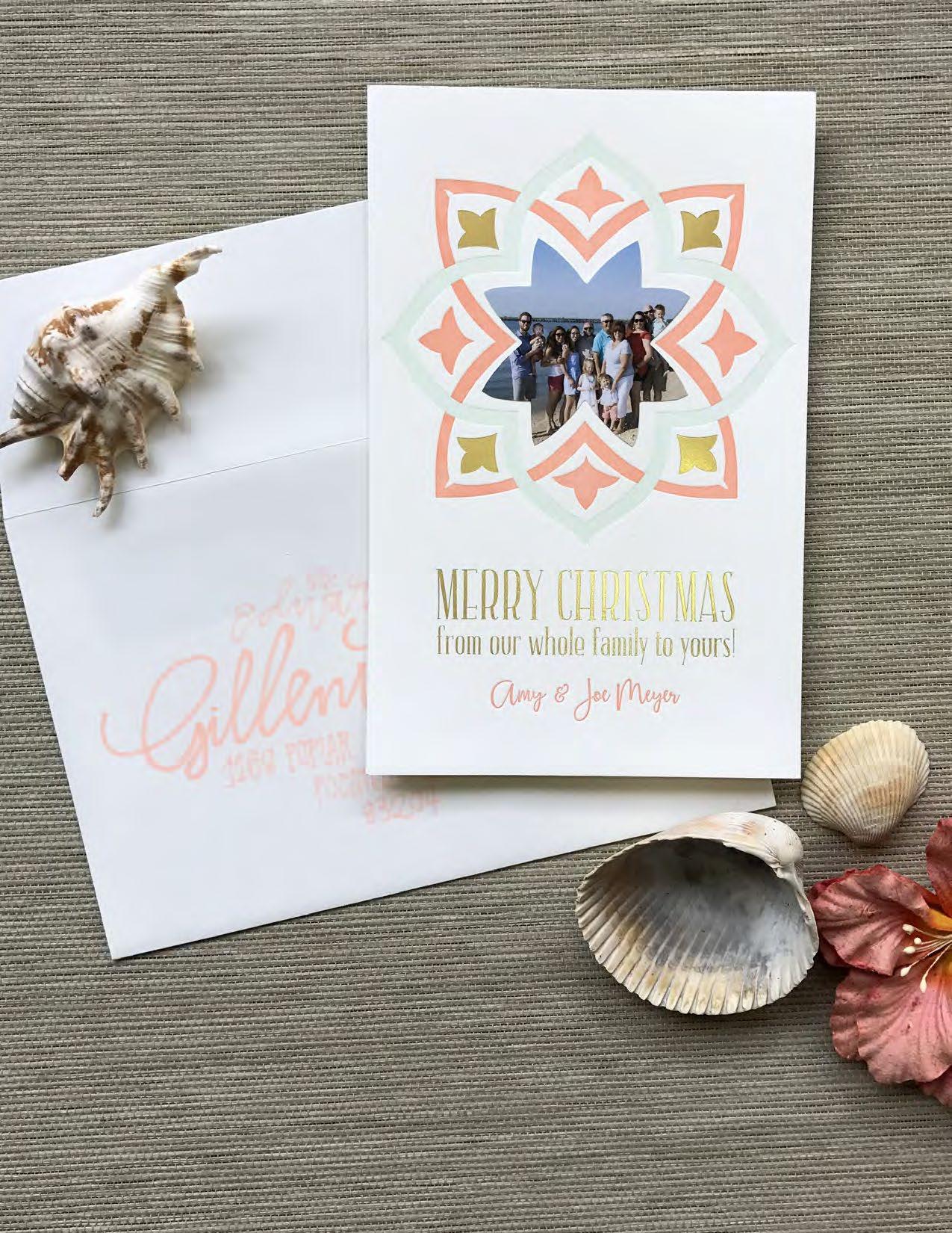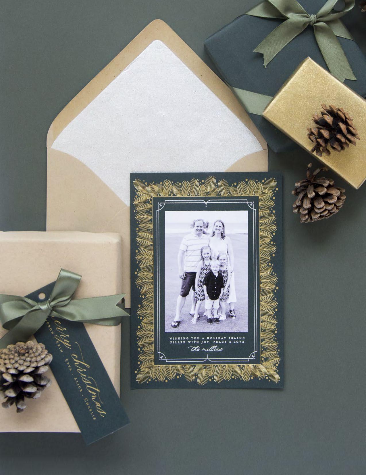 o n e c ol o r fo i l s t a m p with space for a photo shown with envelope liner L346 and one color foil stamp return address