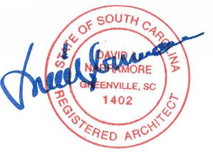 OPENINGS PROTECTED AGAINST THE ENTRANCE OF RAIN OR SNOW. VENTILATION OPENINGS SHALL HAVE A LEAST DIMENSION OF 1/16" MIN. AND 1/4" MAX. VENTILATION OPENINGS HAVING A LEAST DIMENSION LARGER THAN 1/4" SHALL BE PROVIDED WITH CORROSION-RESISTANT WIRE CLOTH SCREENING OR SIM. MATERIAL W/ OPENINGS HAVING A LEAST DIMENSION OF 1/16" MIN. AND 1/4" MAX., PER IRC. MINIMUM AREA: THE TOTAL NET FREE VENTILATING AREA SHALL NOT BE LESS THAN 1/150 OF THE AREA OF THE SPACE VENTILATED EXCEPT THAT REDUCTION OF THE TOTAL AREA TO 1/300 IS PERMITTED PROVIDED THAT AT LEAST 40% AND NOT MORE THAN 50% OF THE REQUIRED VENTILATING AREA IS PROVIDED BY VENTILATORS LOCATED IN THE UPPER PORTION OF THE ATTIC OR RAFTER SPACE. UPPER VENTILATORS SHALL BE LOCATED NOT MORE THAN 3' BELOW THE RIDGE OR HIGHEST POINT OF THE SPACE, MEASURED VERTICALLY. THE BALANCE OF THE REQUIRED VENTILATION SHALL BE PROVIDED BY EAVE OR CORNICE VENTS, PER IRC. VENT AND INSULATION CLEARANCE: WHERE EAVE OR CORNICE VENTS ARE INSTALLED, INSULATION SHALL NOT BLOCK THE FREE FLOW OF AIR. A 2" MIN. AIR SPACE SHALL BE PROVIDED BETWEEN THE INSULATION AND THE ROOF SHEATHING AT THE LOCATION OF THE VENT, PER IRC. UNLESS NOTED IN STRUCTURAL DRAWINGS, CUT OUT ROOF SHEATHING BETWEEN OVERFRAMED AREAS AND OTHER INTERCONNECTED ROOF AREAS TO COMBINE VENTILATION AREAS. LIMIT ROOF VENTS TO NO MORE THAN 2 OPENINGS PER ROOF SHEATHING PANEL WITH NO TWO OPENINGS IN THE SAME PANEL BETWEEN THE SAME TRUSSES. PRE FINISHED METAL GUTTERS+ DOWNSPOUTS A1.0 OVERALL PLANS PROJECT DATA PROJECT NUMBER ISSUE DATE REVISIONS 310 MILLS AVE. GREENVILLE, SC 29605 © SEAL 24105 05-15-24 Tax #0095001002800 Greenville SC 104 Dean St 104 DEAN ST RESIDENCE 2 1st Floor Plan SCALE: 1/4" = 1'-0" 1 Site Plan SCALE: 1/16" = 1'-0" DRAWING INDEX A1.0 OVERALL PLANS A2.0 EXTERIOR ELEVATIONS THE PROJECT WAS DESIGNED TO CONFORM TO THE FOLLOWING APPLICABLE CODES FOR THE LOCALITY: 2021 SOUTH CAROLINA BUILDING CODE 2021 SOUTH CAROLINA FIRE CODE 2021 SOUTH CAROLINA MECHANICAL CODE 2021 SOUTH CAROLINA PLUMBING CODE 2021 SOUTH CAROLINA FUEL GAS CODE 2009 INTERNATIONAL ENERGY CONSERVATION CODE 2020 NATIONAL ELECTRICAL CODE SITE DATA OBTAINED FROM SITE DESIGN, LLC SITE PERMIT # 23-1750 05/28/2024 4
