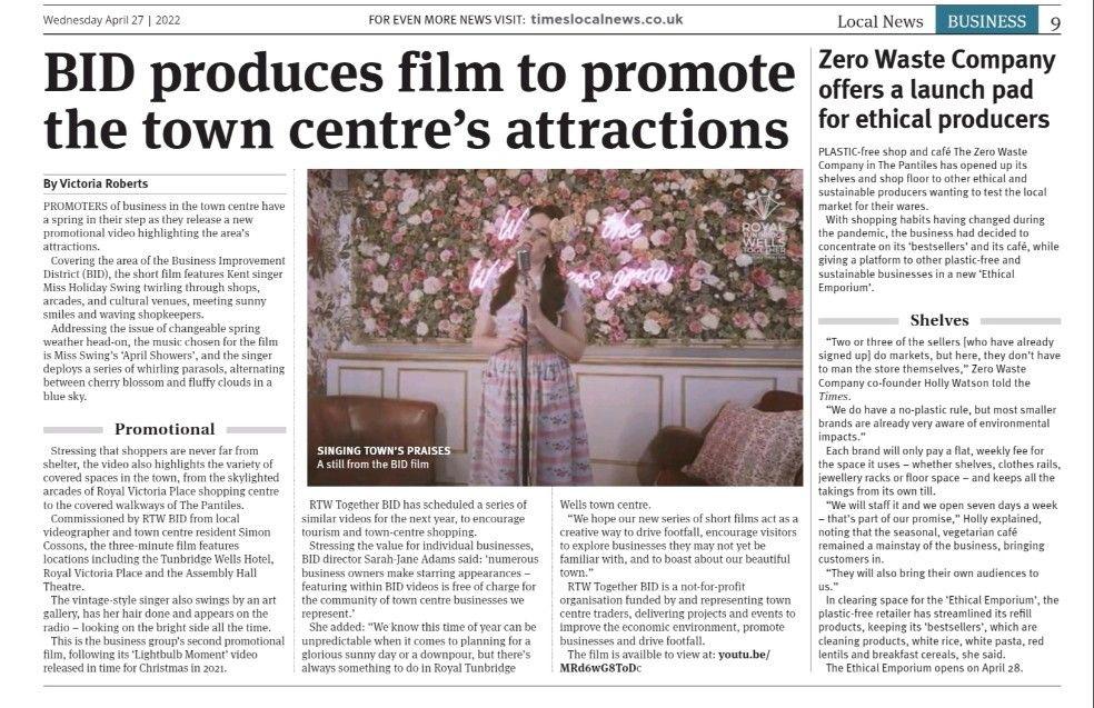 This year, the BID, and the businesses we represent, have regularly featured in The Times Of Tunbridge Wells, SO Magazine, The Kent Messenger, Kent Online, Inside Kent Magazine, The Courier, Index Digital and My Tunbridge Wells, as well as being heard on air with KMFM, Heart Kent and West Kent Radio.
