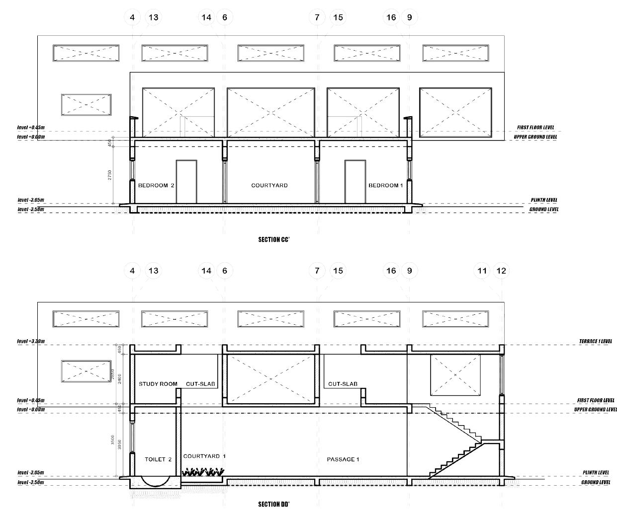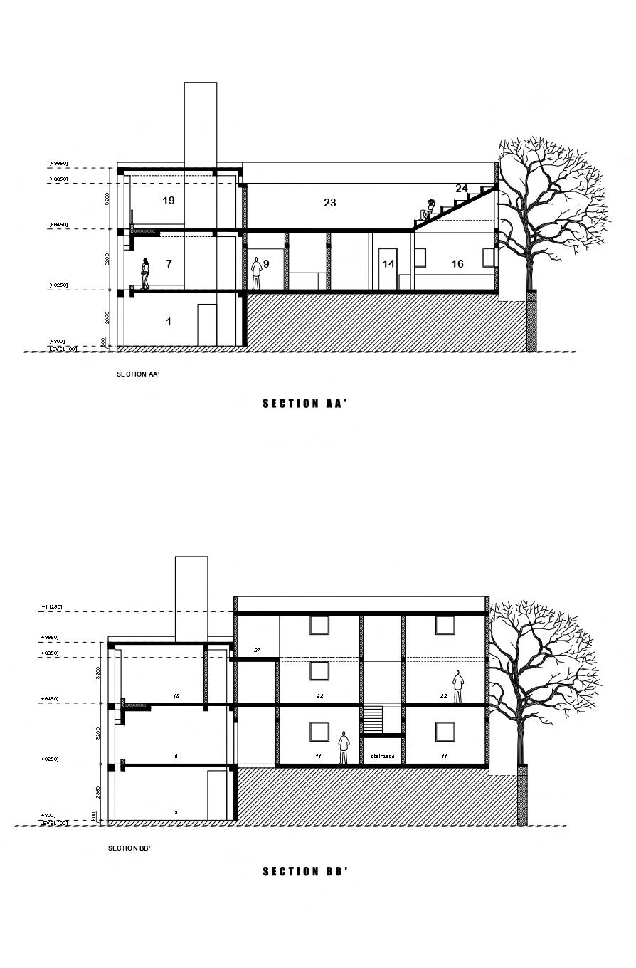 research zone 2 research zone 1 Cafe courtyard 2 Dining space (reedbed system) (reedbed system) courtyard 3 horizontal vertical courtyard 3 courtyard 4 Gathering space Lab 2 Lab 3 Section AA’ Section BB’
