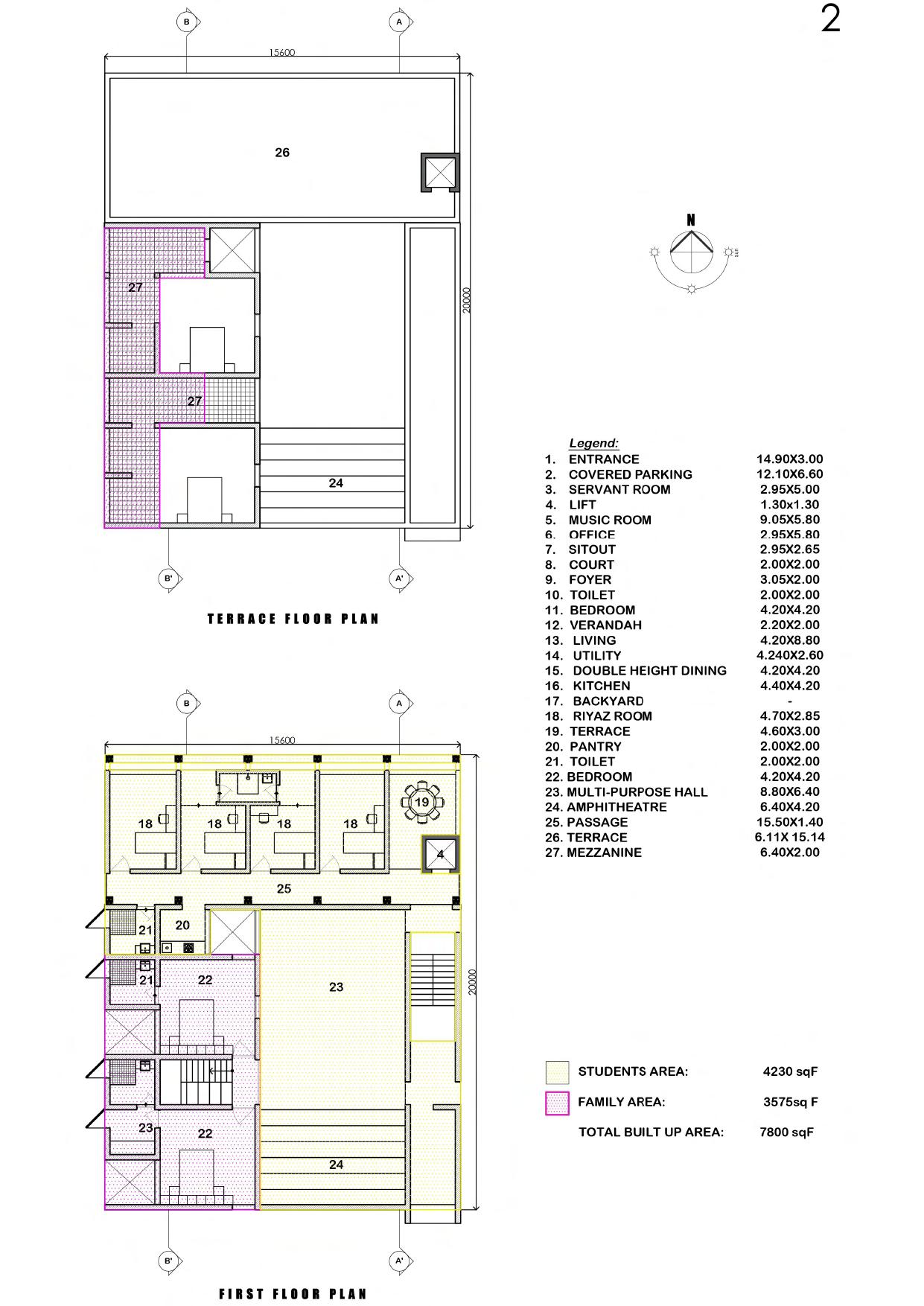 LOCATION PLAN SCALE 1:4000 6TH FLOOR 7TH FLOOR STILT TOTAL 14 3RD FLOOR 4TH FLOOR 5TH FLOOR PARKING SUMMARY PARKING REQD. BY RULES =14 FLOORS TOTAL PARKING PROVIDED = 14 BIG CARS 6 SMALL CARS 8 14 TOTAL BUA SUMMARY BUA INCLUDING FUNGIBLE AREA IN S.Q.M (PER FLOOR) STILT 1ST FLOOR 2ND FLOOR 152.2 FUNGIBLE AREA SQ.M TOTAL TOTAL BUA SQ.M 1087.84 STAIRCASE/ LIFT SQ.M 19.3 3.87 6.42 3.34 10.37 9.21 24.89 9.87 5.05 5.88 3.23 8.13 9.33 13.43 9.1MWIDEROAD KANOJIANGREROAD 2.46 3.45 2.52 1.05 2.42 3.35 4.46 PLOT NO 66 ADJACENTPLOT ADJACENTPLOT ADJACENTPLOT 1.2 0.61 1.25 X 30.49 X 10.21 AREA IN SQ.MTR 1. 2. 3. 4. 5. PLOT AREA CALCULATIONS SR. NO. 6. 7. 155.65 66.31 95.53 142.76 63.69 36.82 16.87 TOTAL = TOTAL PLOT AREA (PA) = 577.63 SQ.M X 30.49 X 4.35 X 31.69 X 9.01 X 24.88 X 2.96 X 9.87 X 3.42 AREA ACCORDING TO TRIAGULATION METHOD 577.63 X 31.12 X 6.14 X 31.69 X 4.02 X 11.74 X 1.32 AREA IN SQ.MTR 1. 2. 3. 4. 5. SET BACK AREA CALCULATIONS SR. NO. 6. 7. 7.57 3.92 3.14 1.57 5.40 13.09 3.80 TOTAL = TOTAL SET BACK AREA (SBA) = 39.36 SQ.M 8. X 7 X 1.12 X 3.13 X 2.01 X 1.57 X 2.01 X 6.8 X 1.59 X 12.24 X 2.14 X 6.18 X 1.23 X 2.02 X 0.87 0.87 AREA ACCORDING TO TRIAGULATION METHOD 39.36 19.3 19.3 19.3 19.3 19.3 19.3 19.3 152.2 152.2 152.2 152.2 152.2 152.2 22.44 F.P. NO. 66 OF WARD K VILEPARLE, VILEPARLE - EAST, MUMBAI - 400057 53 57 58 59 ROS 1.5 ROS 1.5 57 64 65 61 63 69 70 71 87 86 88 89 90 68 92 91 109 A 99 98 95 94 93 3.08 9.21 10.37 24.89 9.87 3.87 6.56 3.00 12.24 18.16 WS 18 PLOT NO 66 STILT FLOOR PLAN SCALE 1.100 0.23M THK. BRICK MASONRY COMPOUND WALL LIFT 1.50X2.00 UP S 1 2 3 1 2 3 S 4 5 6 B 4 5 6 1 LOBBY 7.98X1.50 1.10X2.00TOILET 3.25X4.68OFFICESOCIETY METERROOM 3.00X3.00 0.60 0.60 0.60 0.60 0.15 0.00 0.00 3.91 6.63 3.03 6.49 3.37 0.00 10.47 9.3 3.11 25.14 9.97 5.11 5.94 4 5 6 UGT RWH 2.08X1.48 3.00X1.50 7 8 E.S F.S RAMP@1:12RATIO STORMWATERDRAINAGE(0.6MWIDE) STORM WATER DRAINAGE (0.6M WIDE) STORM WATER DRAINAGE (0.6M WIDE) 0.15 0.15 0.15 0.15 0.15 0.15 0.15 0.15 0.15 0.15 3.26 8.22 20.29 4.29 5.56 9.43 13.56 ENTRANCE 3.68 3.93 2.00X1.73CABINSECURITY 9.1MWIDEROAD KANOJIANGREROAD S 3.64 3.41 3.15 3.64 4.18 4.08 3.56 2.57 2.8 4.75 4.23 2.46 2.63 4.76 B 1 2 3 2 9 RISER THREAD0.180.30 W.G B B' A' A CHAJJA600MMWIDEPROJECTIONABOVE ABOVECHAJJA600MMWIDEPROJECTION ABOVECHAJJA600MMWIDEPROJECTION IN OUT 1.5X1.5PUMPROOM IC IC IC IC IC IC IC DC LINEMAIN 0.23M THK. BRICK MASONRY COMPOUND WALL ADJACENT PLOT ADJACENT PLOT ADJACENT PLOT SLAB CROSS SECTION OF COMPOUND WALL CROSS SECTION OF U.G.T. CROSS SECTION OF S.W.D. 300 THK BRICK WALL PAVERS BLOCK SCREEDING 0.65 DEPTH FOUNDATION RUBBLE 0.15 THK P.C.C. SOILING 4.0X3.0 UGT R.C.C. COPING IN ELEVATION GATE PILLAR POST R.C.C. COPING R.C.C. MOULDING L.E.D. LIGHT 1.5X2.0 PUMP ROOM 3.00 2.10 3.31 0.60 M 0.60 M AREA OF THE PLOT AS PER P.R.C. 577.6 1. DEDUCTION 2. SETBACK AREA 39.56 (a) ANY RESERVATION D.P. ROAD REQ. BALANCE AREA 498.48 3. (b) (c) TOTAL DEDUCTION 79.12 (d) 15% R.G. PROVIDED (NON DEDUCTABLE) NIL ZONAL BASIC FSI 1.00 4. PERMISSIBLE BUA AS PER ZONAL BASIC FSI 577.6 5. ADDITIONAL BUA FOR 2(a) TO BE UTILIZED WITH IN THE PERMISSIBLE FSI AS PER COL.NO.7 TABLE 12 OF REG.30(A) 79.12 7. BUA DUE TO ADDITIONAL FSI ON PAYMENT OF PREMIUM (4X50%) 8. BUA DUE TO ADMISSIBLE TDR 50% OR 70% OR 90% OR 100% AS PER ROAD WIDTH TOTAL ADDITIONAL BUA 328.36 TOTAL PERMISSIBLE BUA 905.96 ADD 35% FUNGIBLE AREA PERMISSIBLE FUNGIBLE AREA ON PAYMENT OF PREMIUM TOTAL PROPOSED FUNGIBLE AREA TOTAL GROSS BUILT-UP AREA PERMISSIBLE INCLUDING FUNGIBLE 12. 13. 1223.04 PROPOSED BUA 14. FSI CONSUMED 16. 2.18 AREA STATEMENT AREA IN SQ.MTR A PROFORMA (A) 1087.84 (a)ROAD SETBACK AREA TO BE HANDED OVER 100% 39.56 SLUM TDR ( EITHER 50% TO 80%) NIL (a) (b)GENERAL TDR (EITHER 50% OR 70% OR 90% OR 100% 6. 11. 9. 10. PERMISSIBLE FUNGIBLE AREA ON PAYMENT OF PREMIUM FOR RESIDENTIAL (11) X 35% PERMISSIBLE FUNGIBLE AREA ON PAYMENT OF PREMIUM FOR COMMERCIAL (11) X 35% 317.08 NIL 15. 17. EXISTING BUA AREA NIL (a) (b) BALCONY AREA STATEMENT B AREA IN SQ.MTR 1. 2. 3. PERMISSIBLE BALCONY AREA PER FLOOR (10%) PROPOSED BALCONY AREA TOTAL EXCESS BALCONY AREA COUNTED IN BUA TENEMENT STATEMENT B AREA IN SQ.MTR NET BUA OF THE PLOT PROPOSED COMMERCIAL AREA BALANCE AREA FOR RESIDENTIAL 1. 2. 3. PERMISSIBLE TENEMENT 450 PER HECTRE. 4. TENEMENT PROPOSED 5. S.E.B.P. WARD A.E.B.P. WARD EX. ENG.B.P. WARD MUNICIPAL CORPORATION OF GREATER MUMBAI 2 DESCRIPTION OF PROPOSAL AND PROPERTY PROPOSED RESIDENTIAL BUILDING ON PLOT BEARING F.P. NO. 66 OF WARD K VILEPARLE, VILEPARLE EAST, MUMBAI 400057 3 AREA CERTIFICATE THIS IS TO CERTIFY THAT THE PLOT UNDER REFERENCE WAS SURVEYED BY ME ON DATE AND THE MEASUREMENT OF ALL SIDES STATED ON PLAN ARE AS MEASURED ON SITE AND THE AREA OF PLOT = 1149.23 SQ.MT. (ONE THOUSAND ONE HUNDRED AND FORTY-NINE POINT ZERO TWO THREE) SO TALLIES WITH THE AREA STATED ON PROPERTY REGISTER CARD/ T.P. RECORD 4 SIGN/ NAME OF STRUCTURAL ENGINEER DIGITAL SIGN OF ARCHITECT 1 DIGITAL SIGNATURE OF APPROVAL AUTHORITY 7 6 JOB NO. DRG. NO. 001 NORTH 001 SCALE 1:100 DATE 07-10-22 CHK. BY SIGNATURE NAME AND ADD OF ARCHITECT HIRAY COLLEGE OF ARCHITECTURE NAME OF STUDENT RUTHVIK SRIKANTH GUDIVADA ROLL. NO. - 2019031 DIV. A 5 SIGN/ NAME OF OWNER/ DEVELOPER 1:200 1:500 STILT FLOOR PLAN SECTION AA' LINE DIAGRAM OF SITE LINE DIAGRAM OF SET BACK AREA ,PLOT AREA CALCULATIONS SET BACK AREA CALCULATIONS PARKING STATEMENT , BUA SUMMARY LOCATION PLAN, BLOCK PLAN , CROSS SECTION THROUGH COMPOND WALL ,CROSS SECTION OF UGT , CROSS SECTION OF SWD. PROFORMA (B) CONTENTS OF THE SHEET NIL 15.53 6.6 498.48 22 14 249.24 NIL NIL 317.08 NIL NIL 498.48 SECTION AA' SCALE 1.100 OHT LEVEL +30.2 M THIRD FLOOR LEVEL +10.2 M FOURTH FLOOR LEVEL +13.2 M FIFTH FLOOR LEVEL +16.2 M SIXTH FLOOR LEVEL +19.2 M SEVENTH FLOOR LEVEL +22.2 M TERRACE LEVEL +25.2 M SECOND FLOOR LEVEL +7.2 M FIRST FLOOR LEVEL +4.2 M GROUND FLOOR LEVEL +0.15 M PARAPET WALL LEVEL +26.6 M STILT FLOOR LEVEL +0.60 M LIFT MACHINE ROOM METER ROOM PASSAGE KITCHEN PASSAGE KITCHEN PASSAGE KITCHE