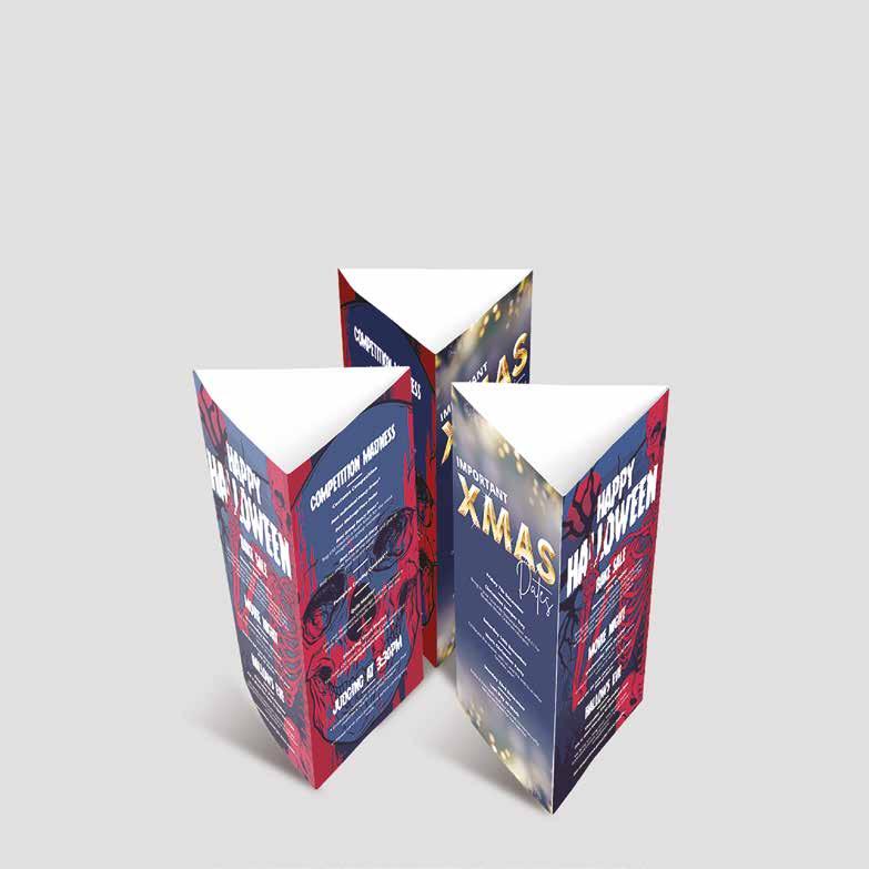 Are you looking for a quick and easy way to promote your deals and special offers? Tent cards are a brilliant solution –drawing the eye on whichever surface they’re placed. Our tent cards are delivered flat and pre-creased for easy assembly.