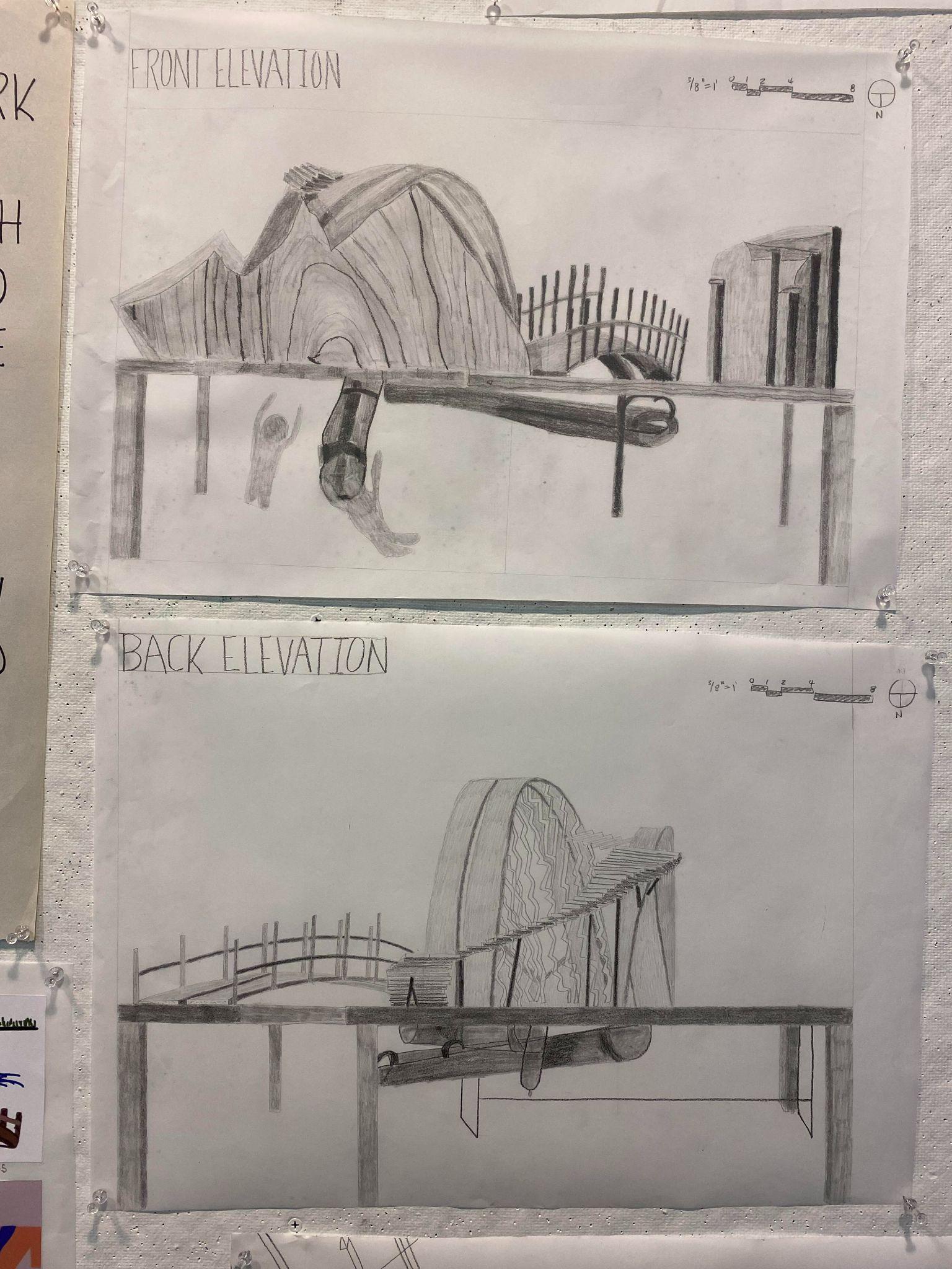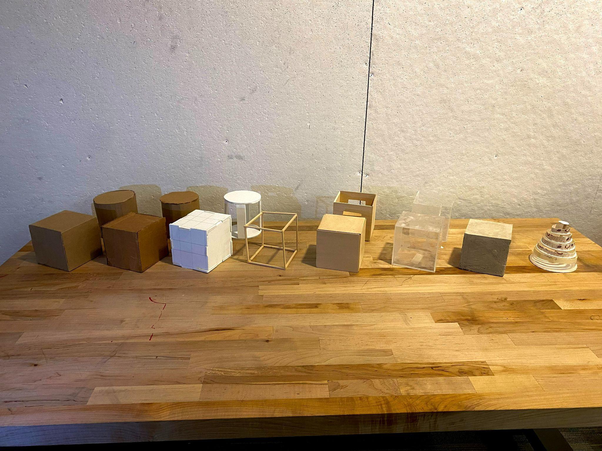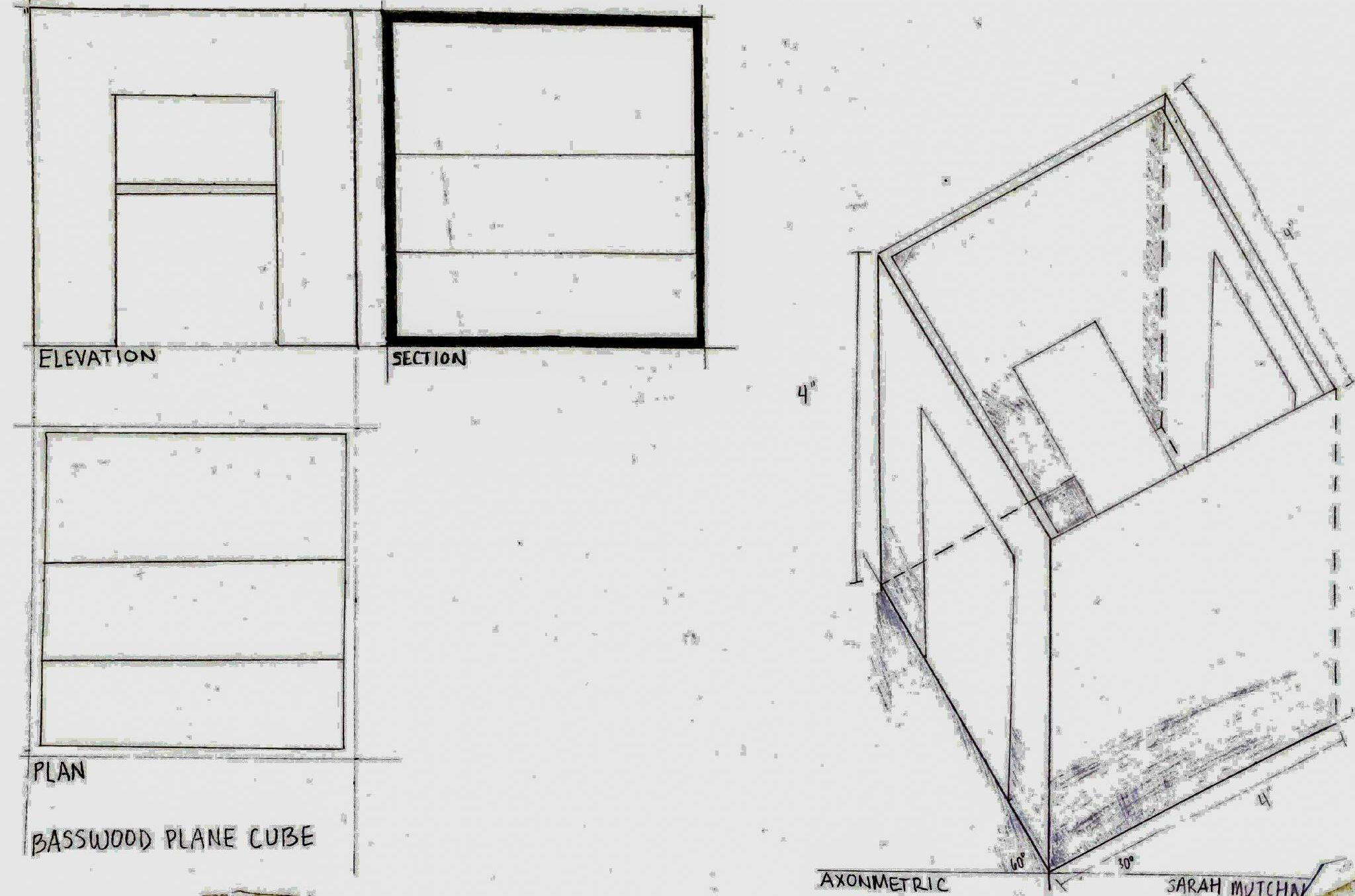For this project, each week throughout the semester. a 4” by 4” cube, cylinder, or both would have to be crafted out of a material. Along with the crafted object, a drawing through plan, elevation, and section view would be drawn along with an axonometric. These drawings taught the importance of line weights and showed and develop skills that would be needed for design drawings. This project emphasized “out of the box thinking” so each cube or cylinders would be abstract.