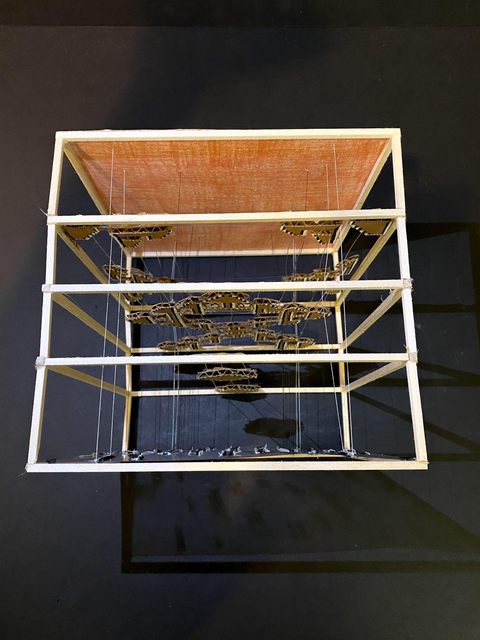 This project’s goal was to take an object and be able to see the relationship between 2D and 3D form. The object had to be crafted accurate to the original object. The object needed to be drawn to help with crafting; so drawing elevations, plans, sections, and perspectives. The object that was specific for this case was a polaroid camera. The camera had to be crafted into the 4 full scale models with concepts of horizontal axis, vertical axis, intersecting spatial grid “egg-crate”, and any material “skin”, which in this case was design with wire and string.