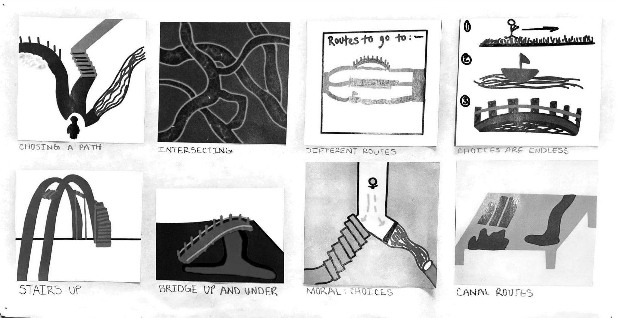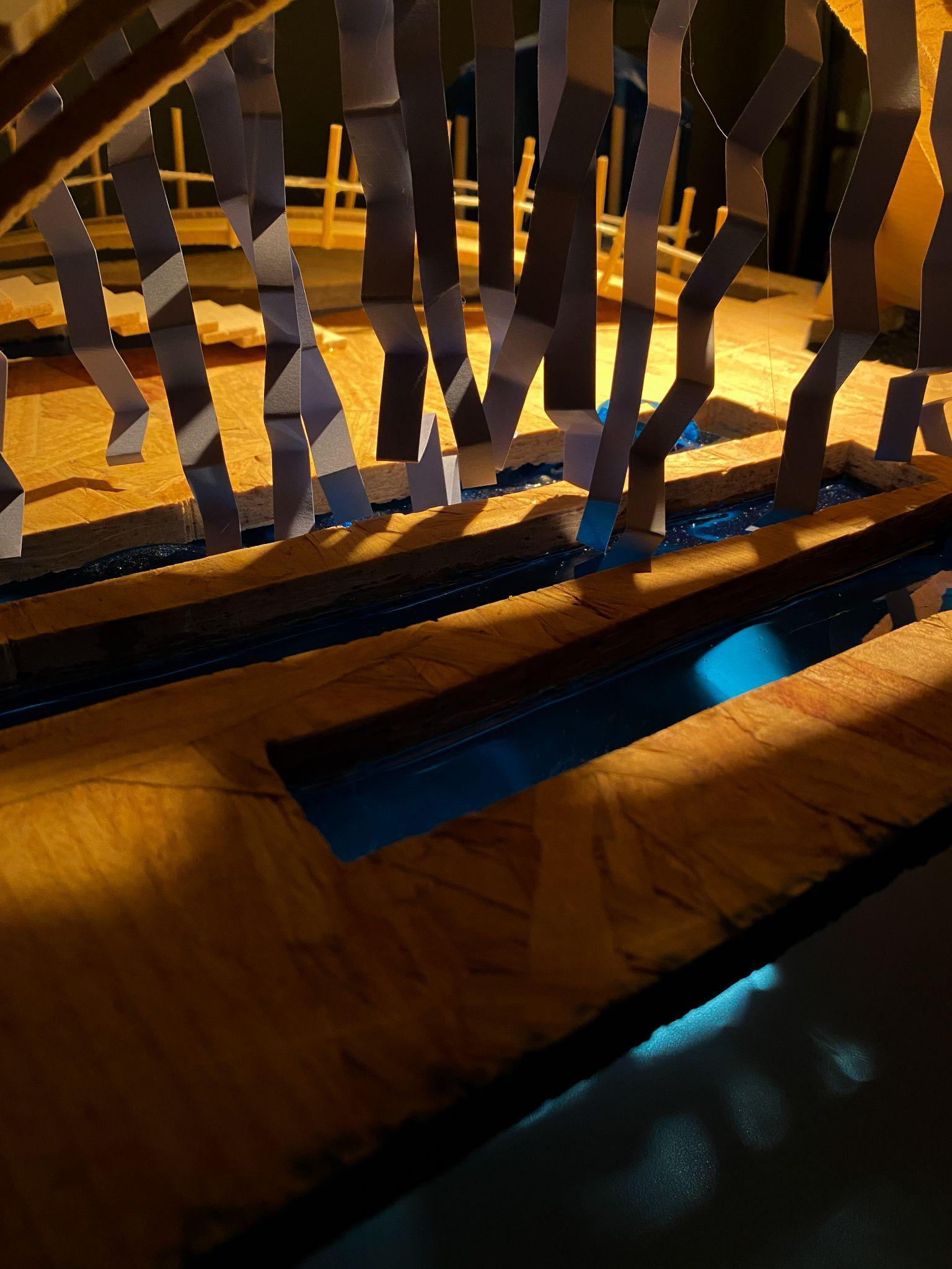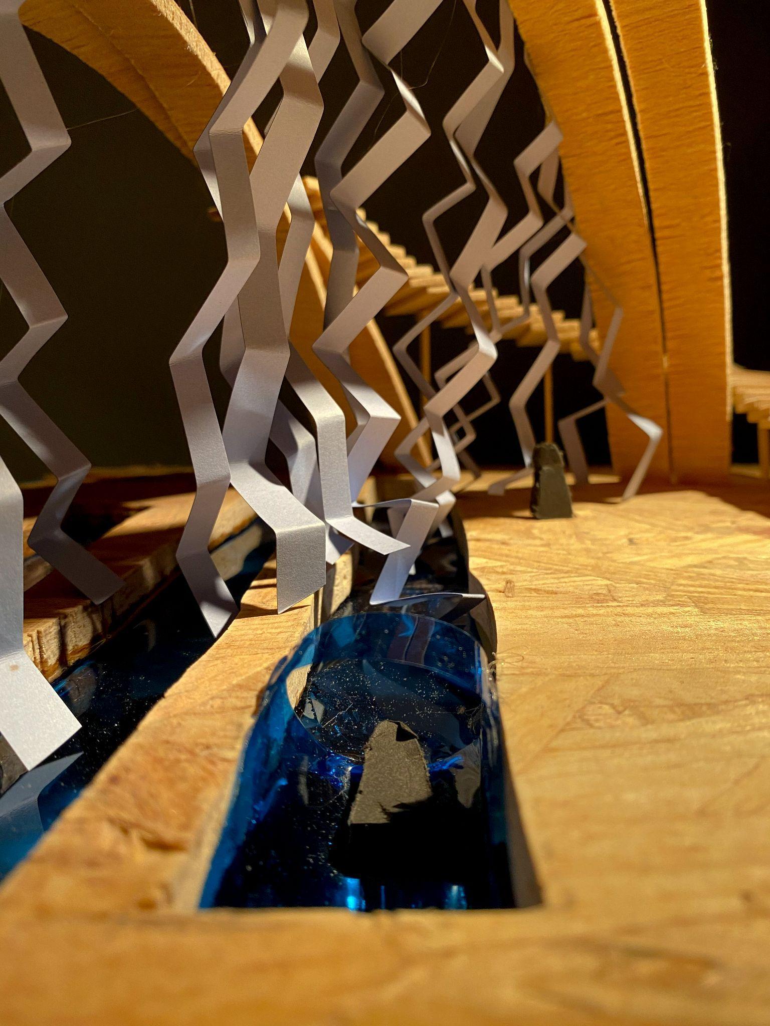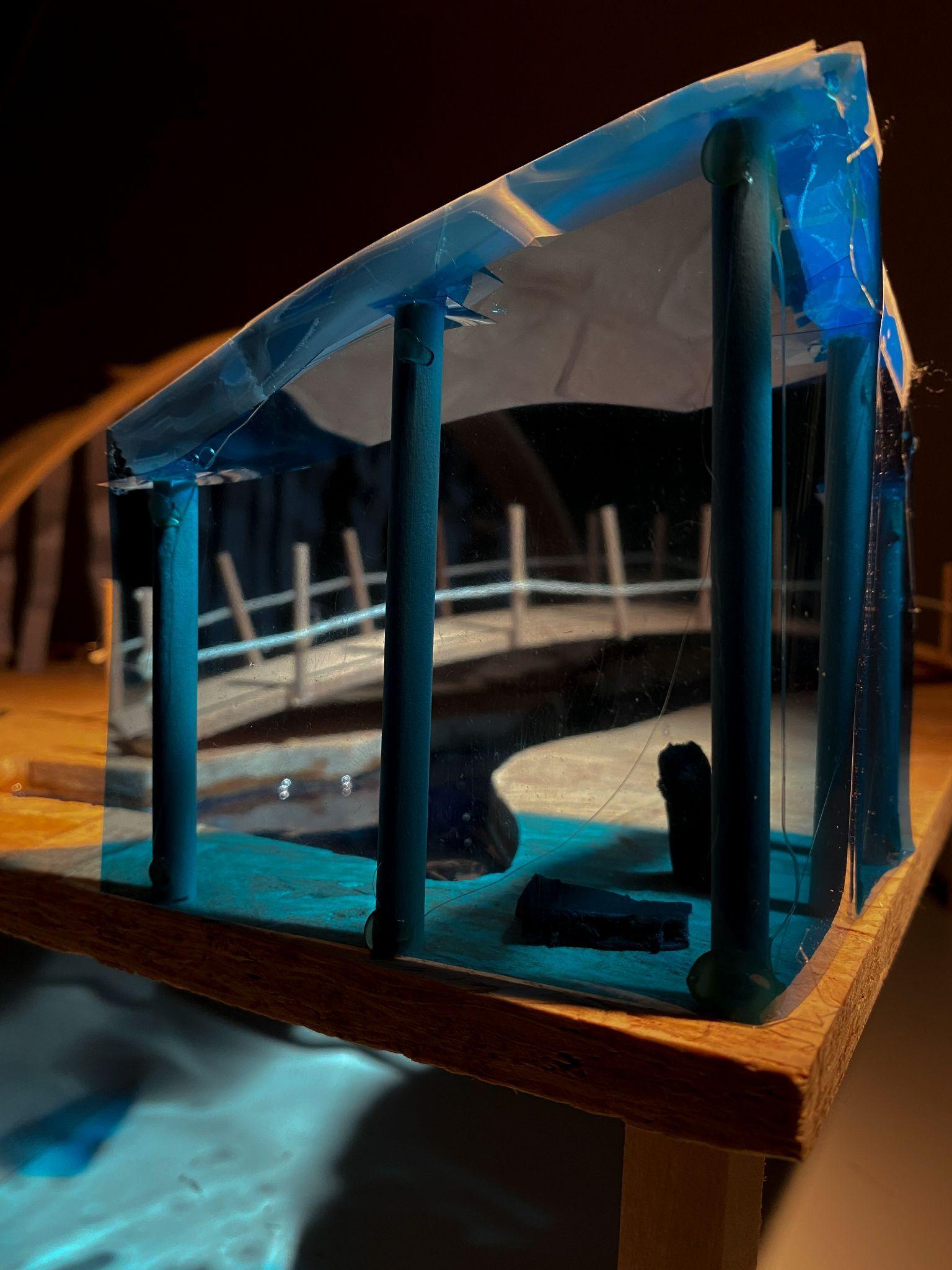 This part of the project’s goal was to make the wooden model into a city. First a city from the book Invisible Cities by Italo Calvino was chosen. The city chosen here was Esmeralda, which is a city involving water with various routes. Next one had to build the city by using the components from the reading and incorporating it into what was added onto the original wooden model. Since Esmeralda has many routes, stairs, slides, bridges and waterways, different materials and more wood was added for the various different routes across land and water to come to life. The city scale was kept in mind when constructing as a person could live in the city. The scale used was ⅜”=1’.