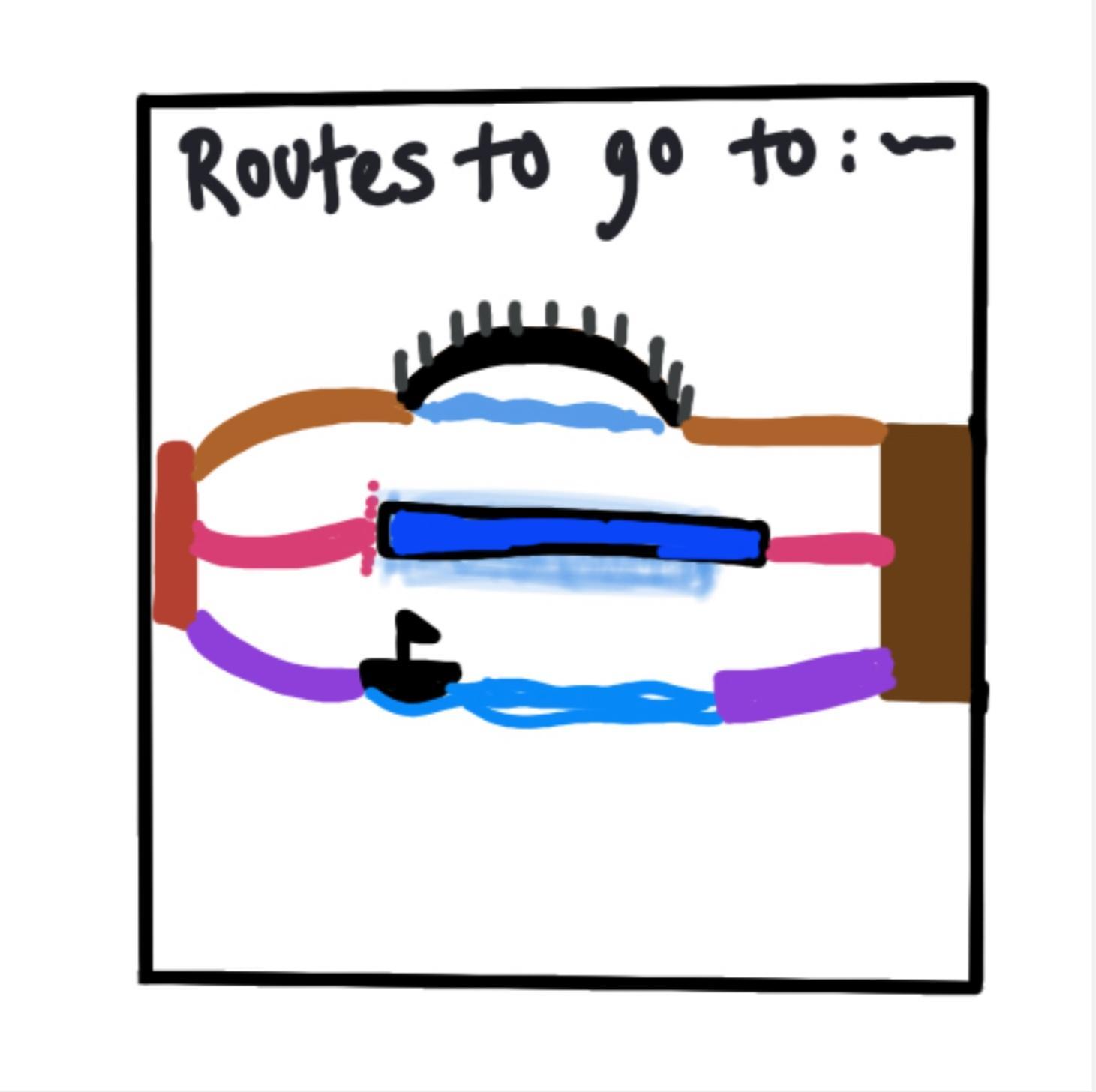 The goal of the project stressed the importance of teamwork while creating a visual statement about connection through a spacial experience on the campus. The placement of the piece was a crucial part and had to be thought about. A dog water bowl stop was crafted out of wood and was placed next to a bench. In front of the bench was a enormous grass space where dogs would play. The placement of the water bowl next to the bench shows the that the human can sit on the bench as they watch their dog play, but the dog can also be close to the owner if it needs to rehydrate. The design and color of the dog water bowl was inspired by the bench so it would seem like a seamless connection and was always there.