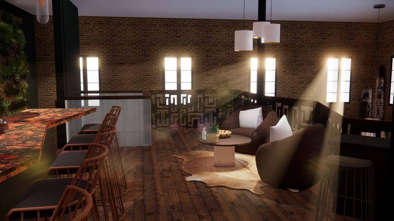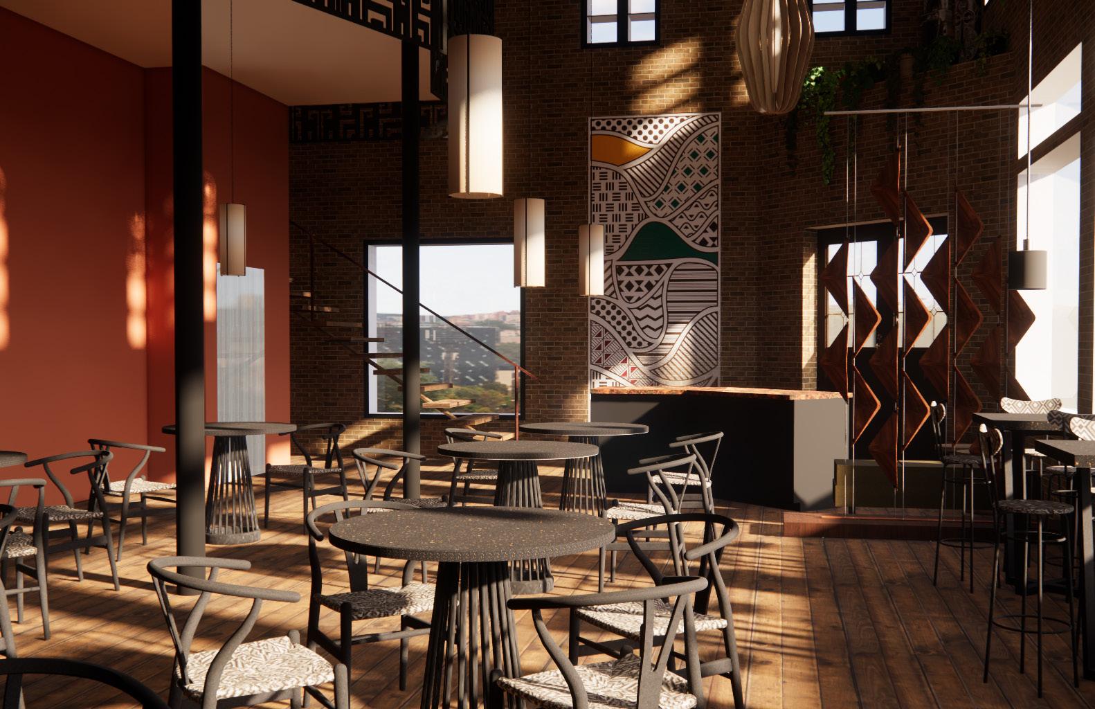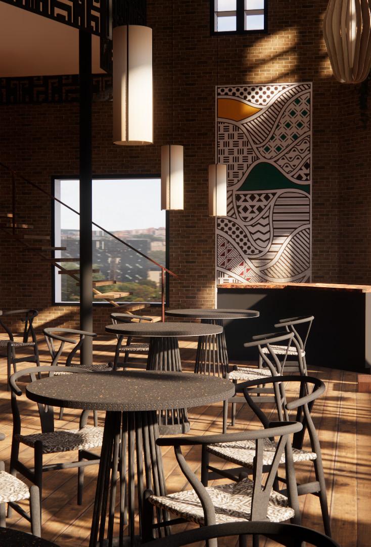 West African culture is full of community, life, movement, and dance. By incorporating these factors, the design invokes a safe place full of cultural comfort that brings pride through bold patterns, decor, and colors.