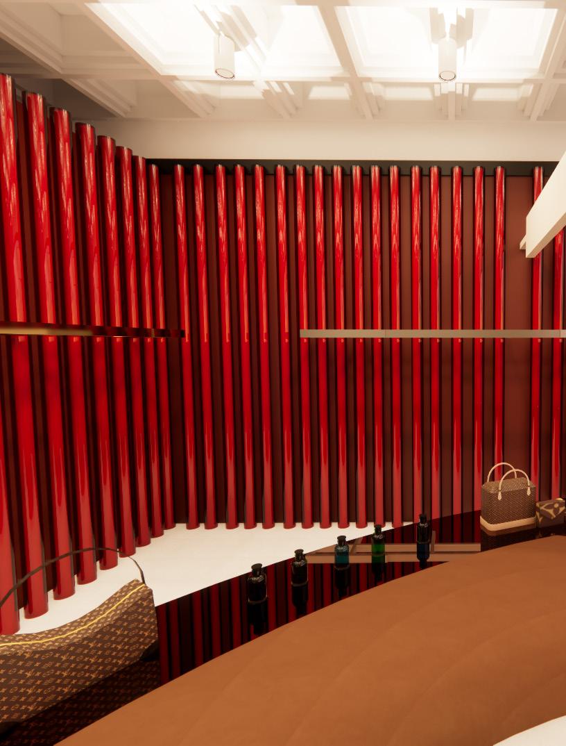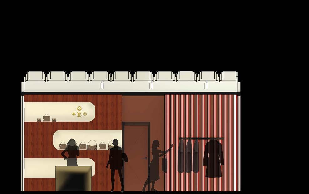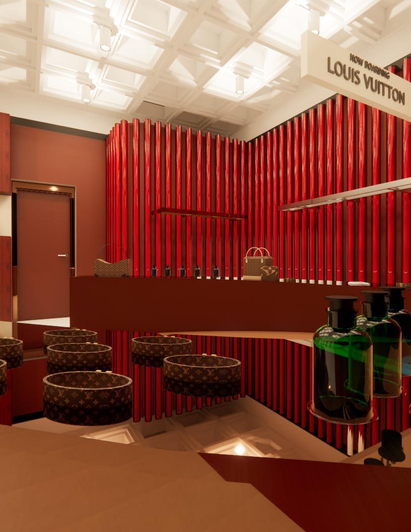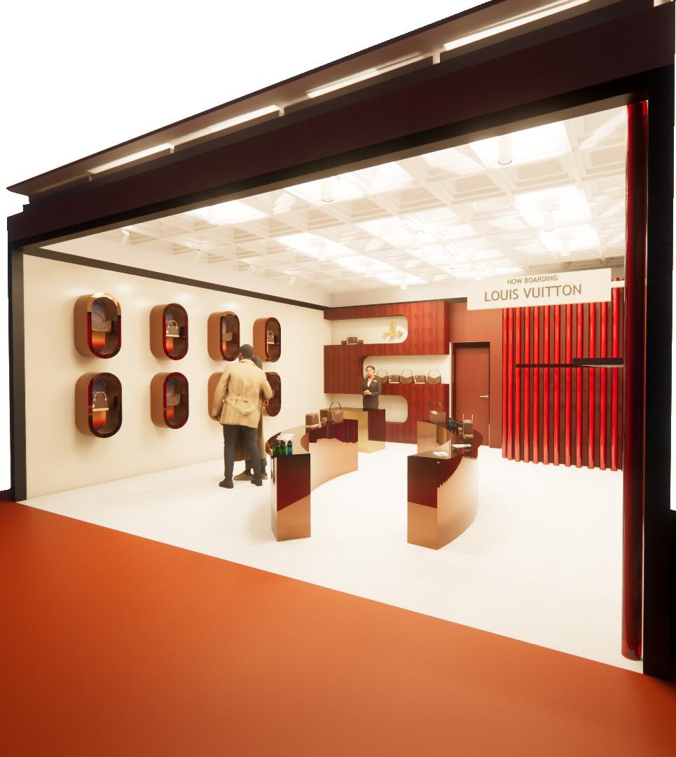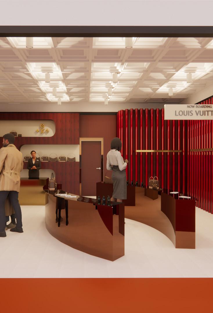 Louis Vuitton is known for creating luxury products that embodies craftsmanship, innovation, and a timeless design. This shopin-shop is designed for those who are seeking a sense of escape and adventure, offering an experience that connects back to the brand’s origins of luxury and travel. Our design focuses on the rich history of Louis Vuitton, drawing inspiration from its origins as a luggage brand. We aim to evoke a sense of escape and adventure, guiding the experience of the shop through the lens of their legacy.
