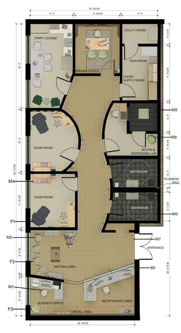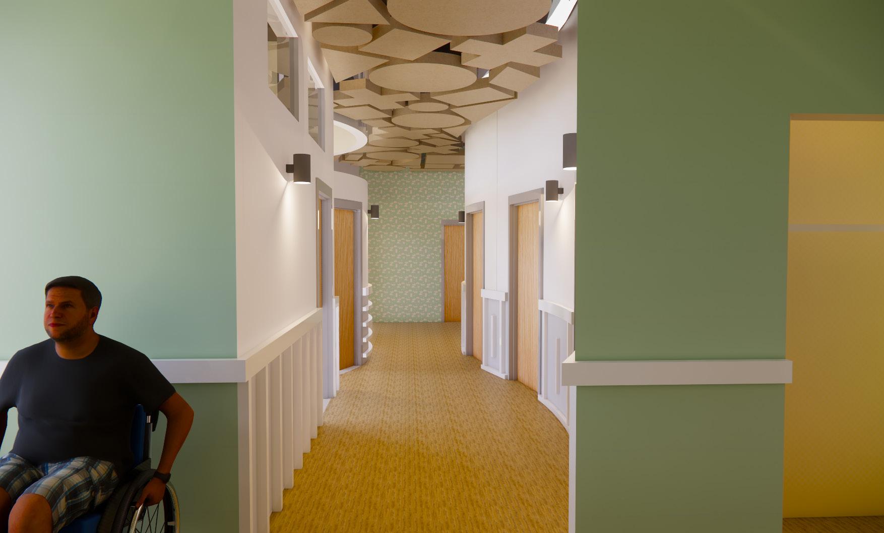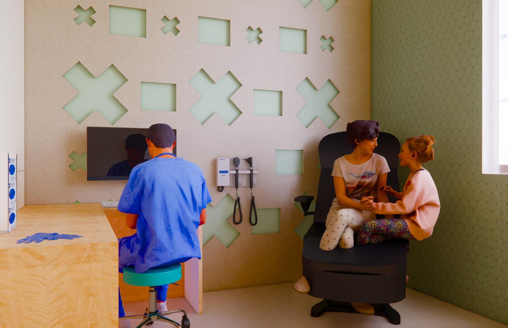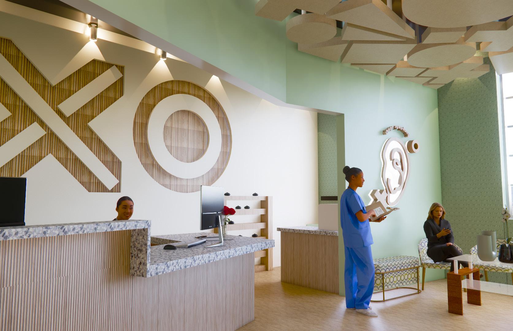 This study model was focused on the different shapes of the Audiometer Test and incorporated these shapes into the room designs. This concept was also incorporated into the acoustical ceiling design and on the acoustic panels in the exam rooms.